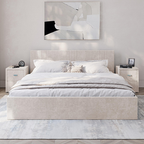 Кровать «Элис» выполнена в мягкой обивке из практичного и износостойкого велюра. Прямая спинка украшена декоративной стежкой, добавляющей стиля и динамики в интерьер. Просторный бельевой короб станет удобным местом для хранения вещей и освободит место в шкафу. Надёжное основание и анатомическая решётка на подъёмных газлифтах обеспечат оптимальный уровень комфорта во время сна.