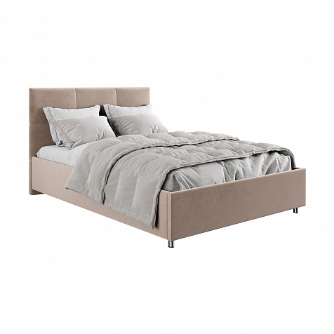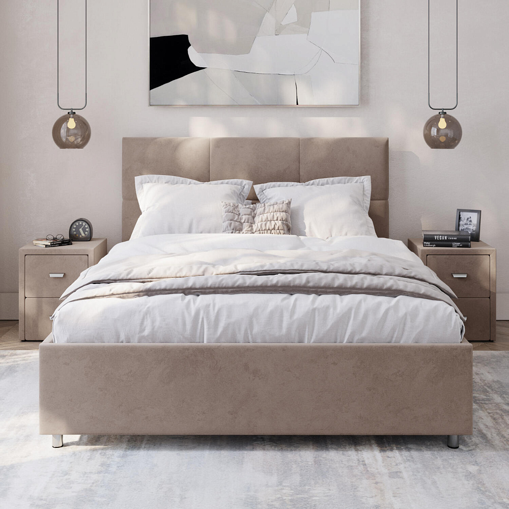 Кровать «Альба» — гармоничное сочетание стильного дизайна и комфорта. Мягкое изголовье с декором в виде прямоугольной строчки выглядит эффектно и создаёт ощущение уюта. Модель также поможет сэкономить пространство спальни благодаря вместительному бельевому коробу под решёткой.