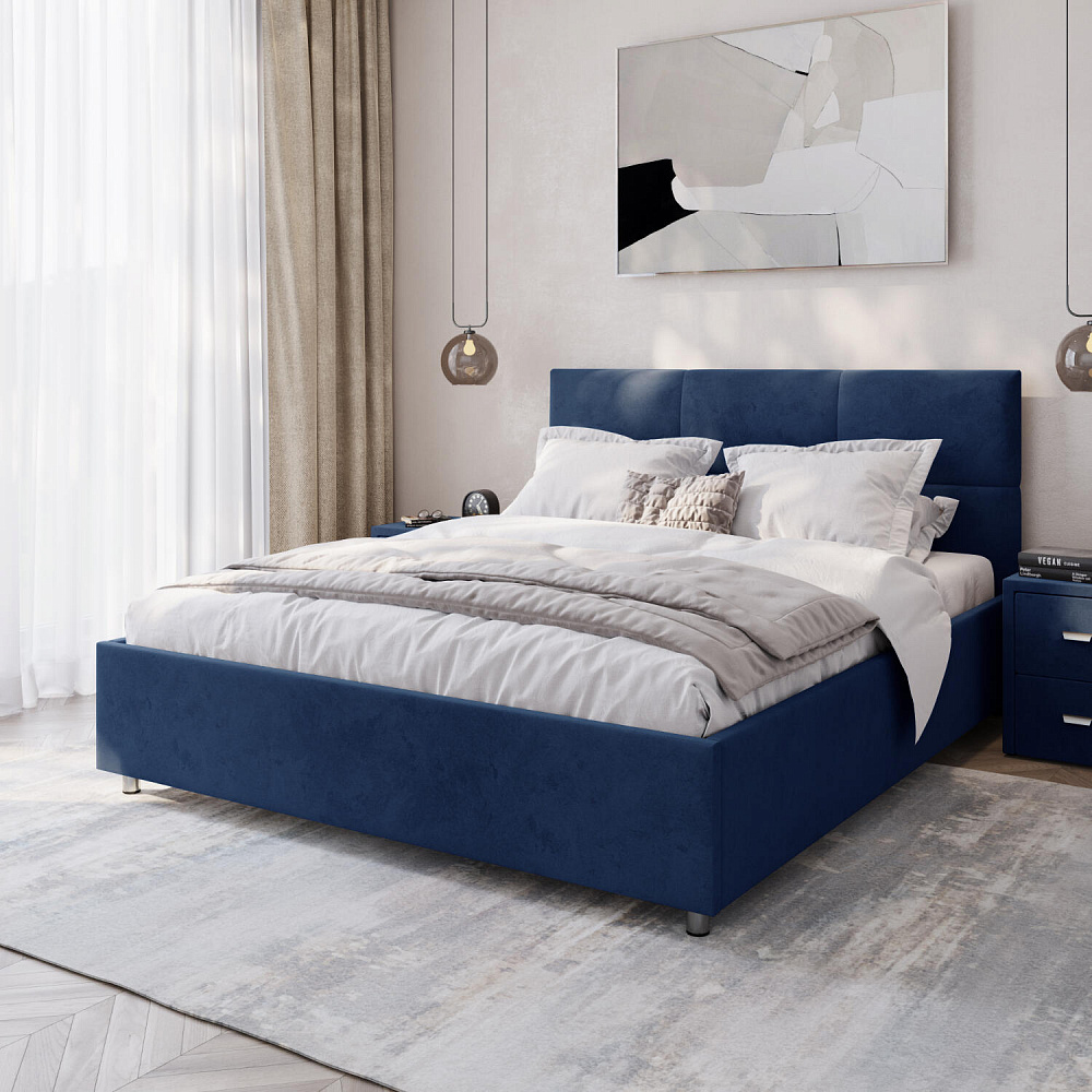 Кровать «Альба» — гармоничное сочетание стильного дизайна и комфорта. Мягкое изголовье с декором в виде прямоугольной строчки выглядит эффектно и создаёт ощущение уюта. Модель также поможет сэкономить пространство спальни благодаря вместительному бельевому коробу под решёткой.