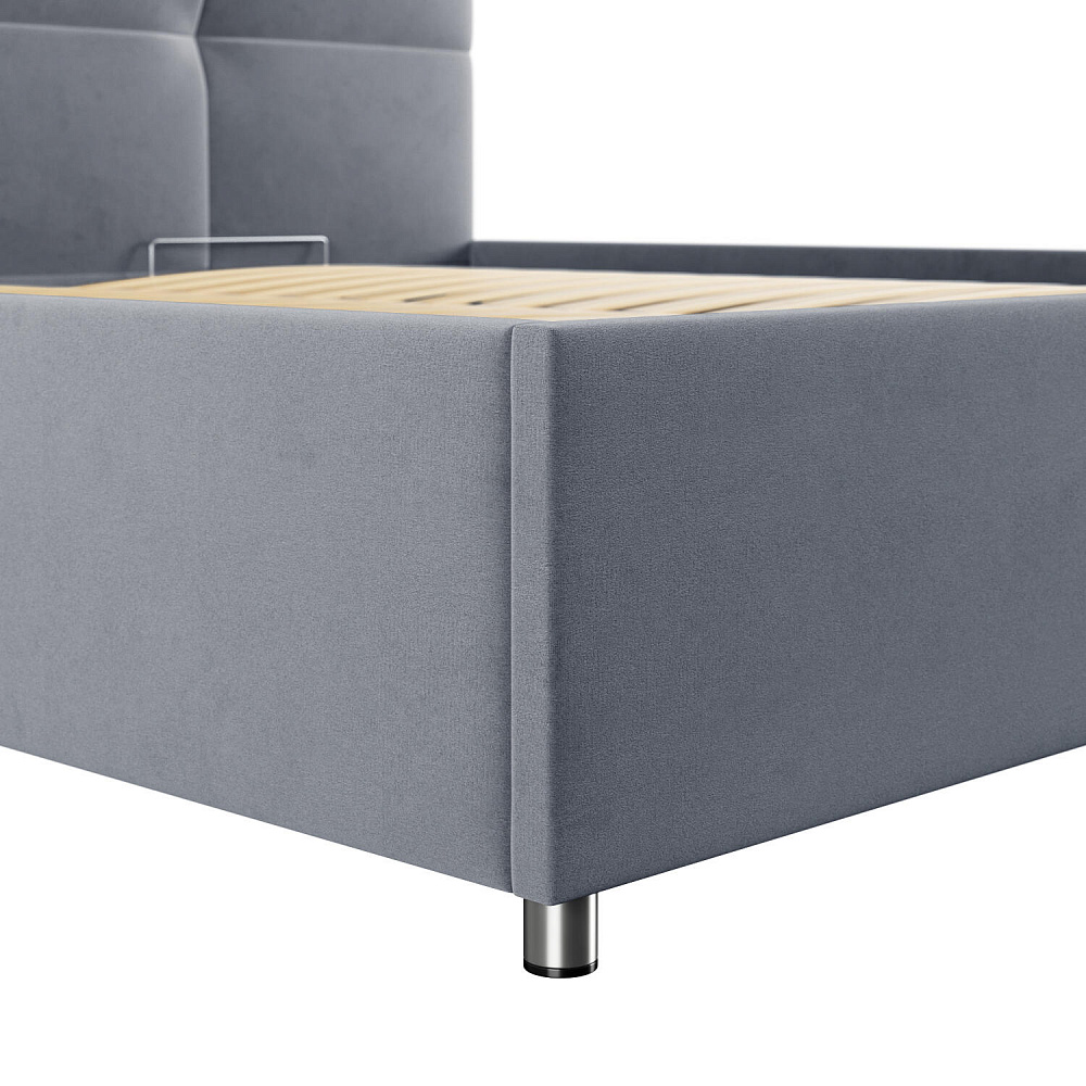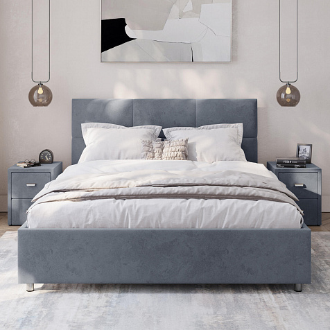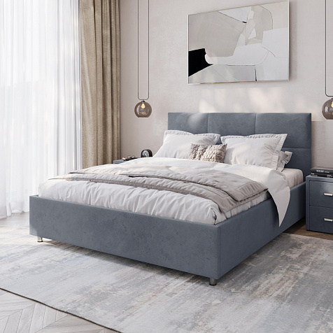 Кровать «Альба» — гармоничное сочетание стильного дизайна и комфорта. Мягкое изголовье с декором в виде прямоугольной строчки выглядит эффектно и создаёт ощущение уюта. Модель также поможет сэкономить пространство спальни благодаря вместительному бельевому коробу под решёткой.
