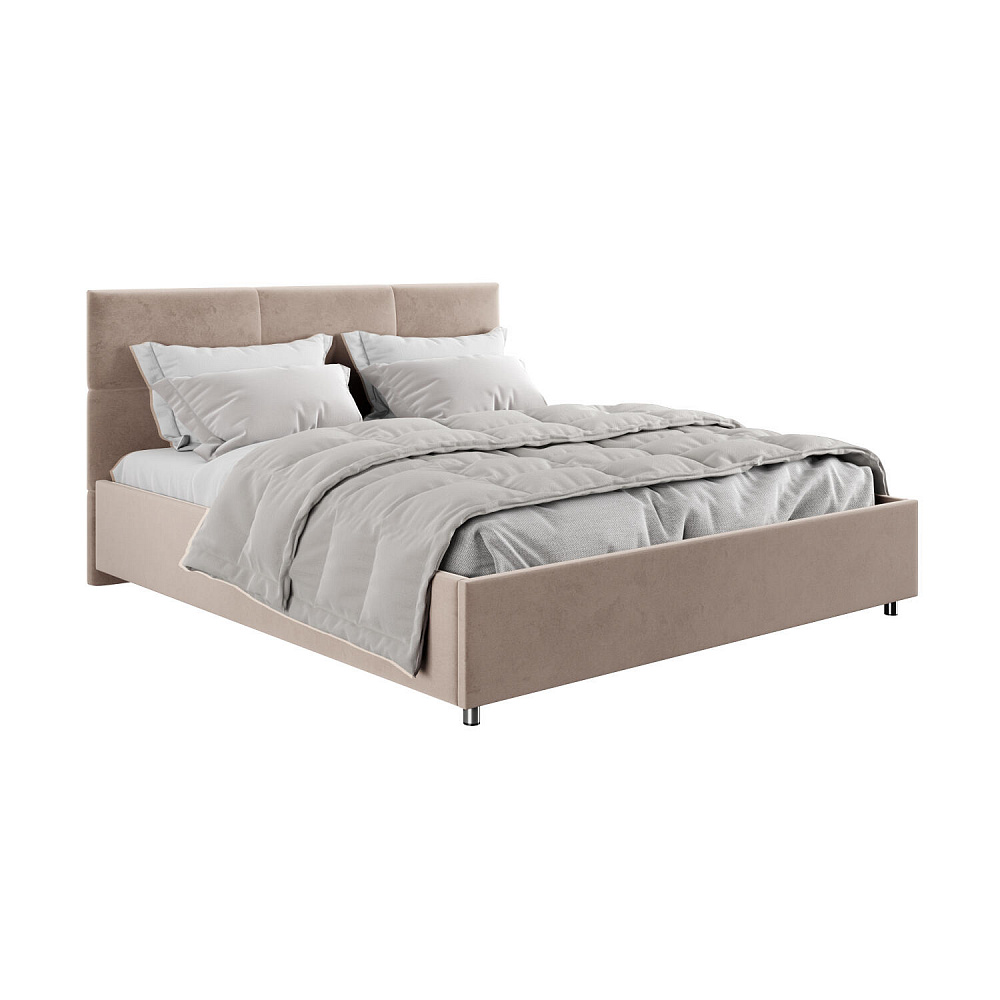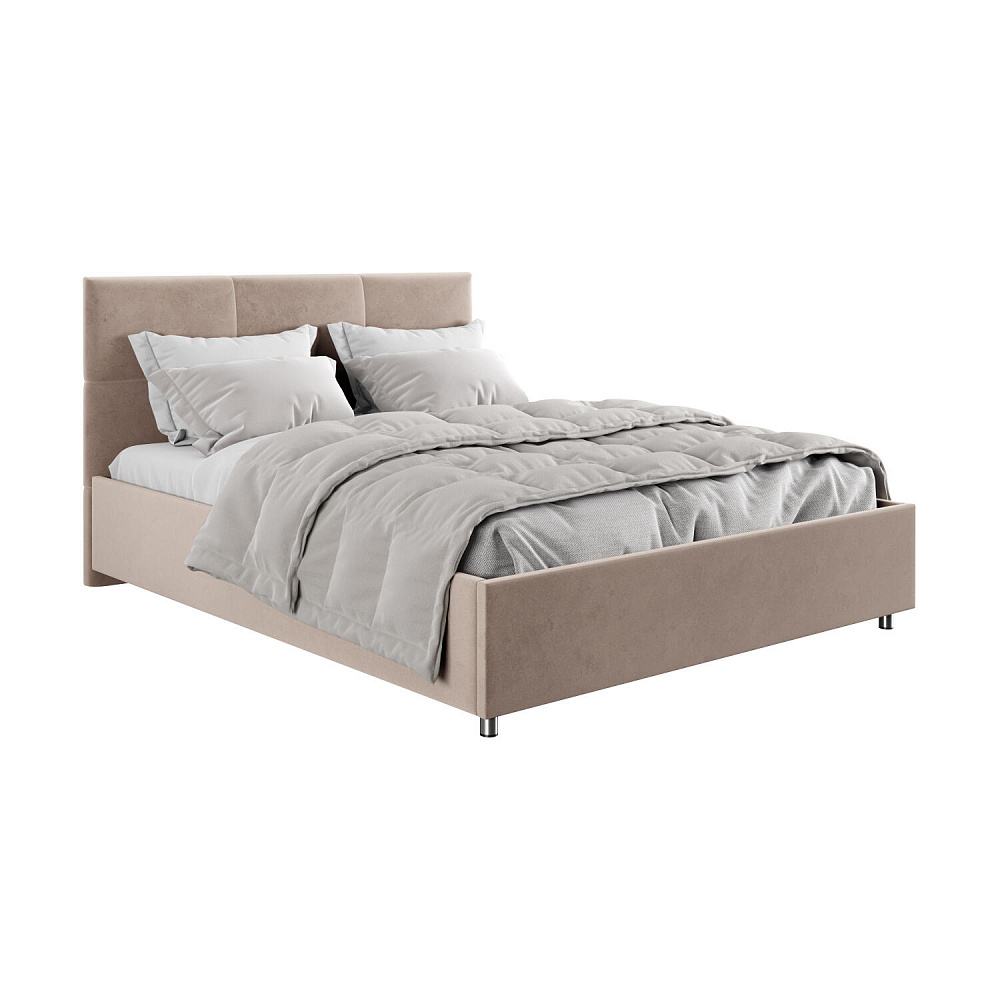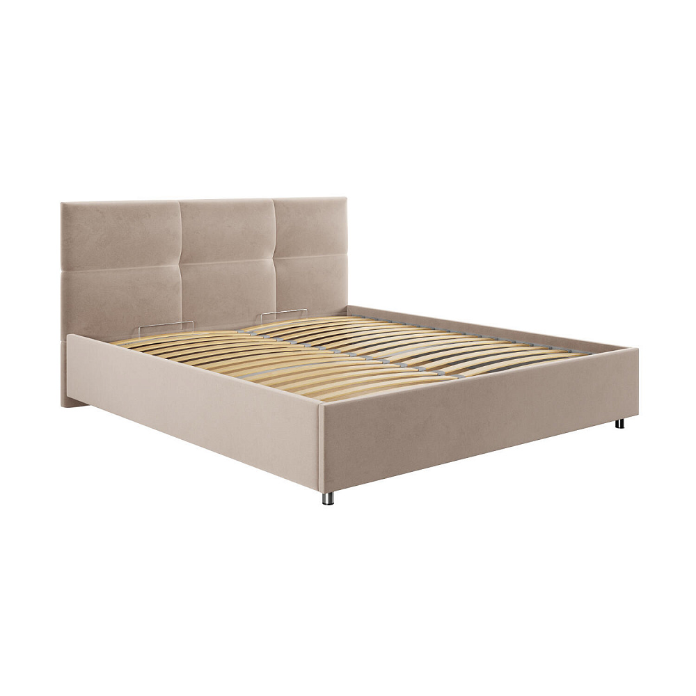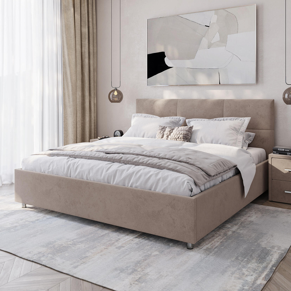 Кровать «Альба» — гармоничное сочетание стильного дизайна и комфорта. Мягкое изголовье с декором в виде прямоугольной строчки выглядит эффектно и создаёт ощущение уюта. Модель также поможет сэкономить пространство спальни благодаря вместительному бельевому коробу под решёткой.