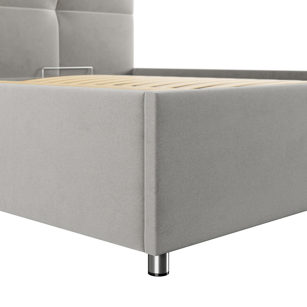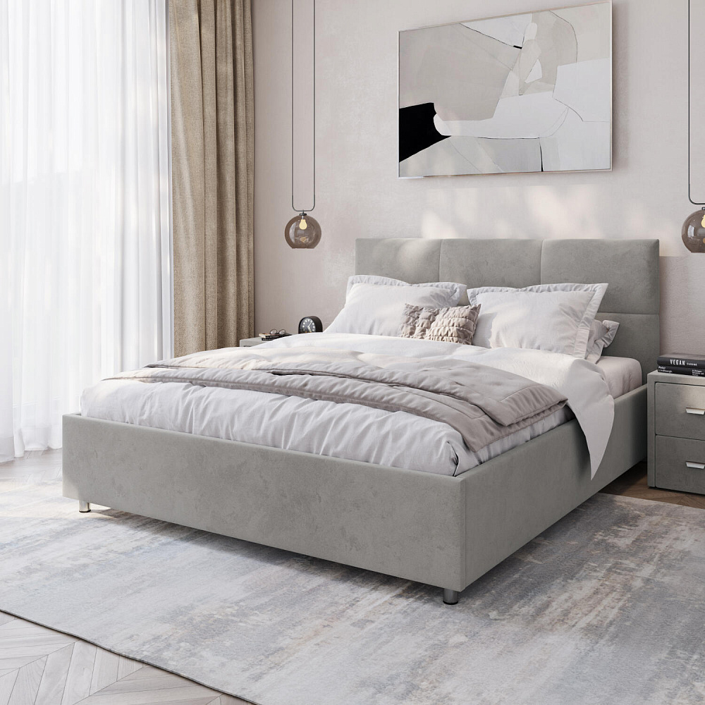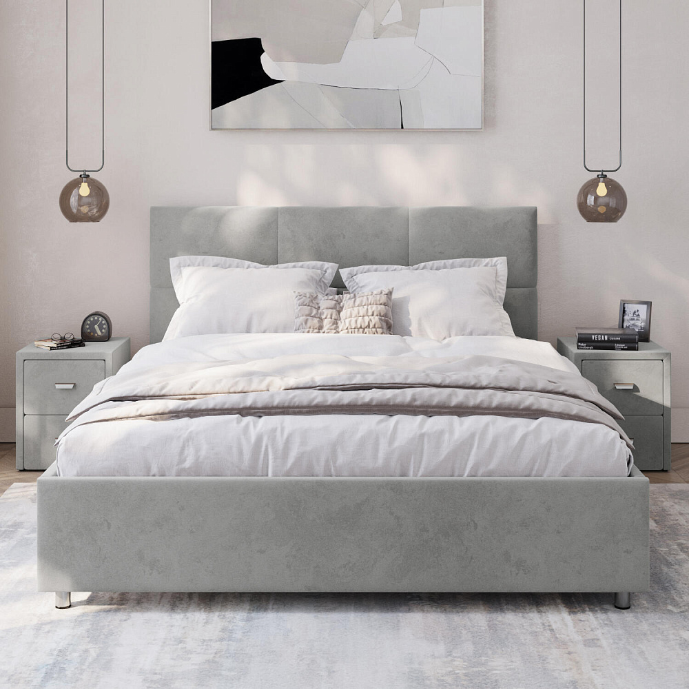 Кровать «Альба» — гармоничное сочетание стильного дизайна и комфорта. Мягкое изголовье с декором в виде прямоугольной строчки выглядит эффектно и создаёт ощущение уюта. Модель также поможет сэкономить пространство спальни благодаря вместительному бельевому коробу под решёткой.