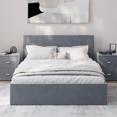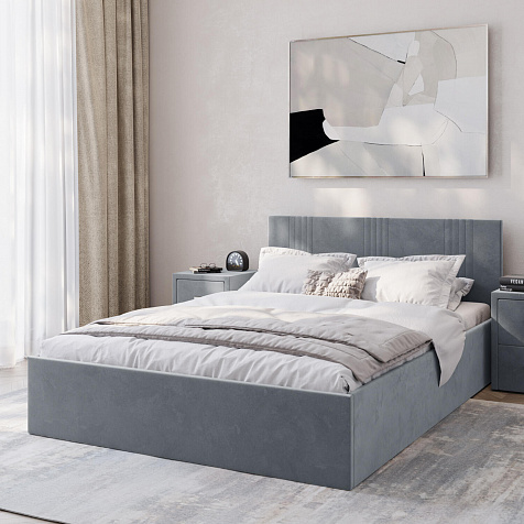 Кровать «Элис» выполнена в мягкой обивке из практичного и износостойкого велюра. Прямая спинка украшена декоративной стежкой, добавляющей стиля и динамики в интерьер. Особо прочный бельевой ящик позволит хранить в кровати даже самые тяжелые предметы и вещи. Надёжное основание и анатомическая решётка на подъёмных газлифтах обеспечат оптимальный уровень комфорта во время сна.