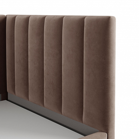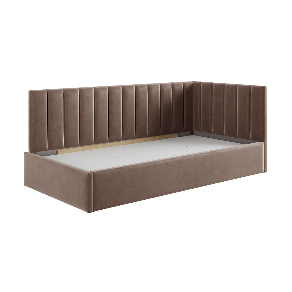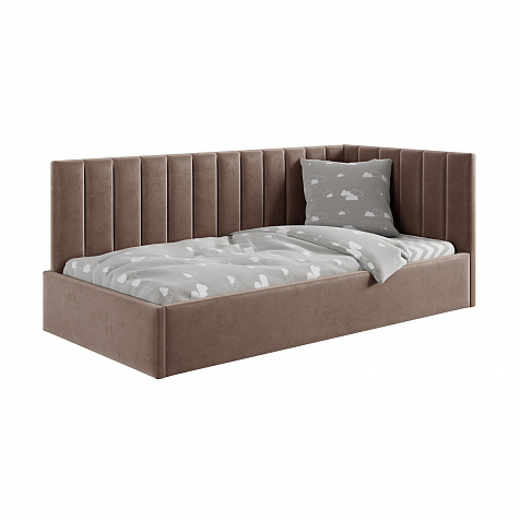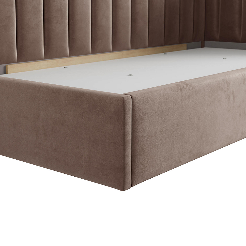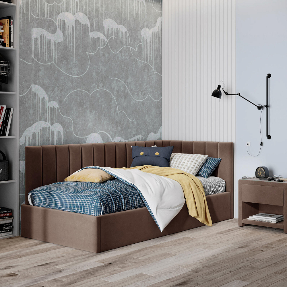 Односпальная кровать «Трино» — сочетание уюта и комфорта в современном дизайне. Спинка Г-образной формы в мягком велюре украшена декоративной вертикальной стежкой, что станет акцентом в интерьере подростковой комнаты.