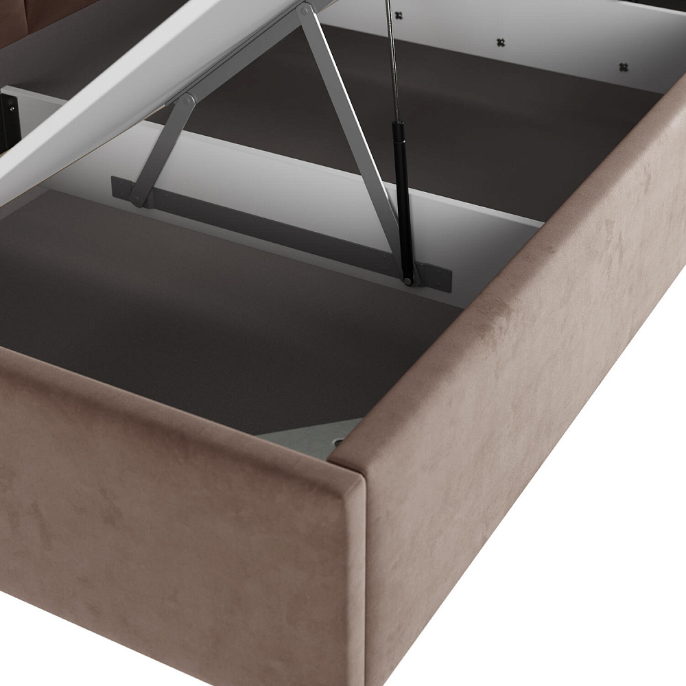 - Удобный доступ к коробу. Механизм легко поднимает и опускает основание кровати вместе с матрасом благодаря газлифтам.