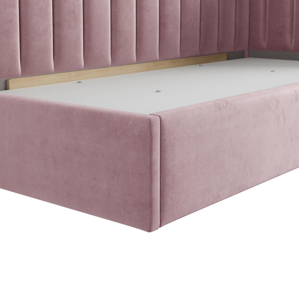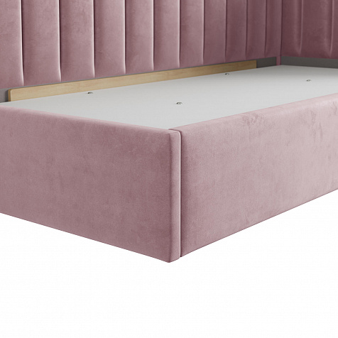 Односпальная кровать «Трино» — сочетание уюта и комфорта в современном дизайне. Спинка Г-образной формы в мягком велюре украшена декоративной вертикальной стежкой, что станет акцентом в интерьере подростковой комнаты.