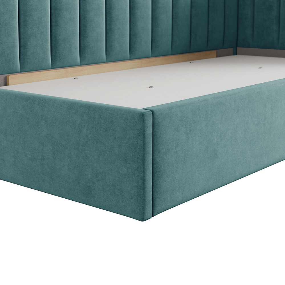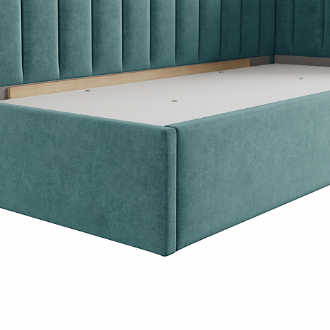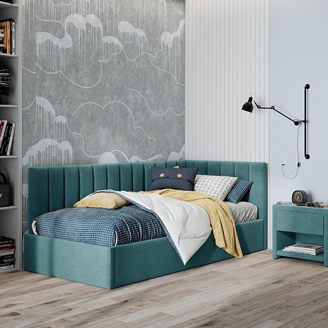 Односпальная кровать «Трино» — сочетание уюта и комфорта в современном дизайне. Спинка Г-образной формы в мягком велюре украшена декоративной вертикальной стежкой, что станет акцентом в интерьере подростковой комнаты.