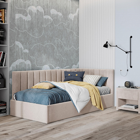 Односпальная кровать «Трино» — сочетание уюта и комфорта в современном дизайне. Спинка Г-образной формы в мягком велюре украшена декоративной вертикальной стежкой, что станет акцентом в интерьере подростковой комнаты.