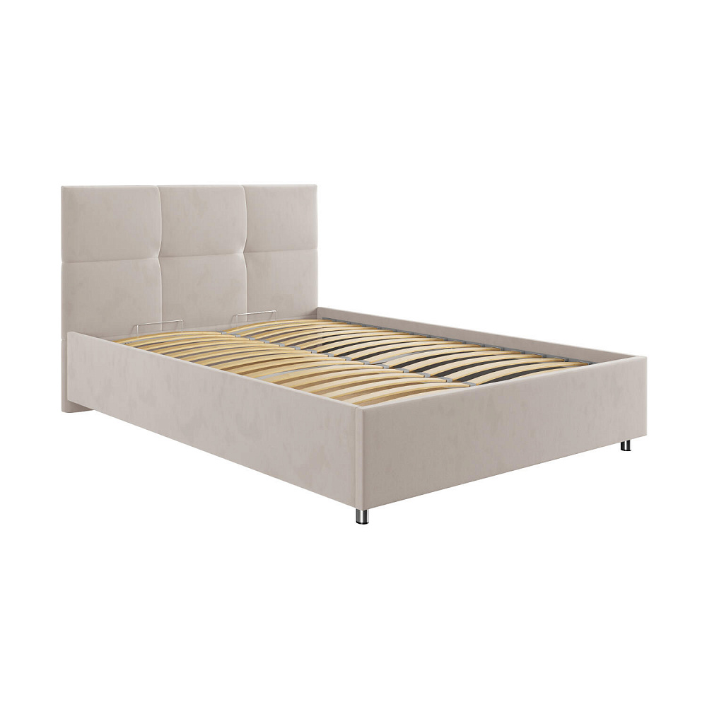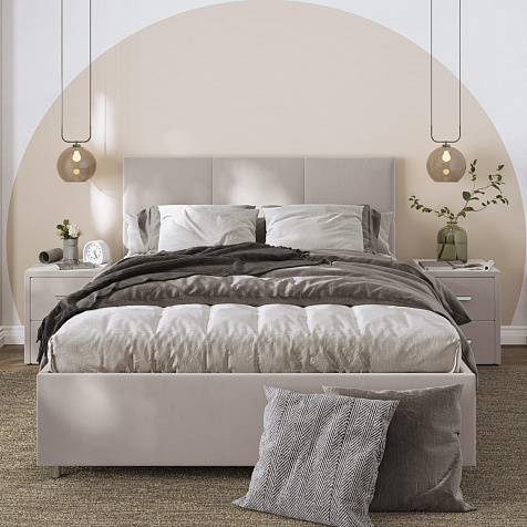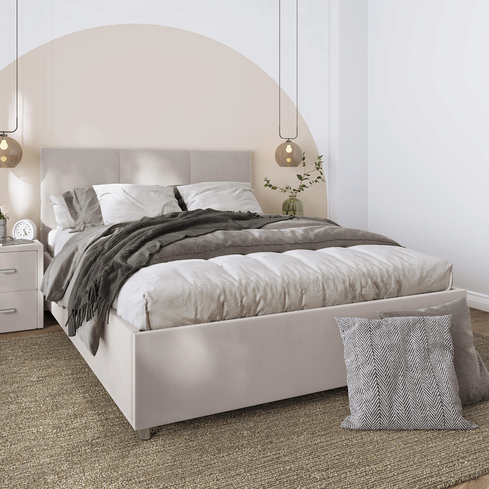Кровать «Альба» — гармоничное сочетание стильного дизайна и комфорта. Мягкое изголовье с декором в виде прямоугольной строчки выглядит эффектно и создаёт ощущение уюта. Модель также поможет сэкономить пространство спальни благодаря вместительному бельевому коробу под решёткой.
