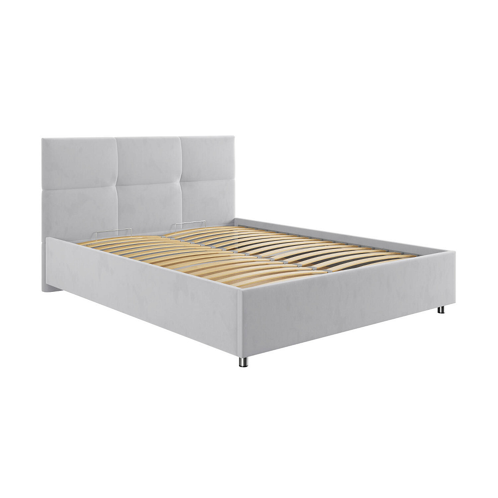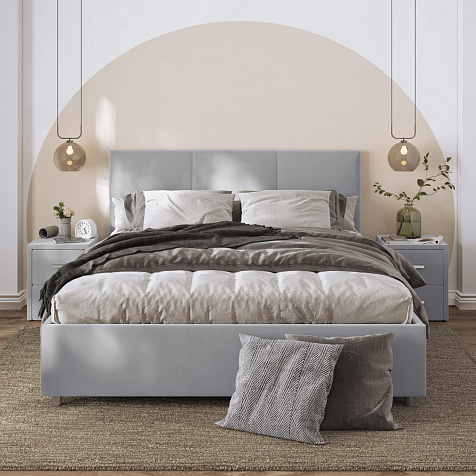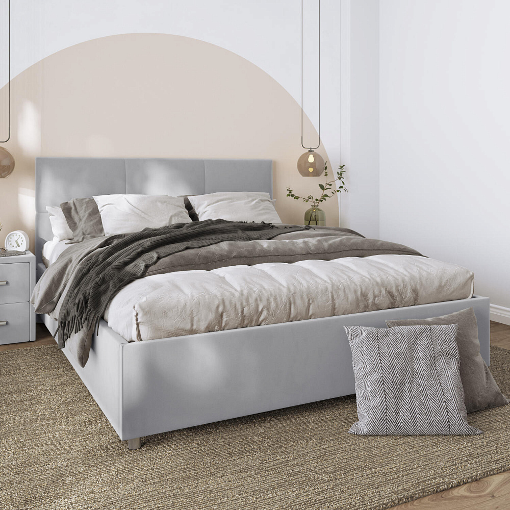 Кровать «Альба» — гармоничное сочетание стильного дизайна и комфорта. Мягкое изголовье с декором в виде прямоугольной строчки выглядит эффектно и создаёт ощущение уюта. Модель также поможет сэкономить пространство спальни благодаря вместительному бельевому коробу под решёткой.