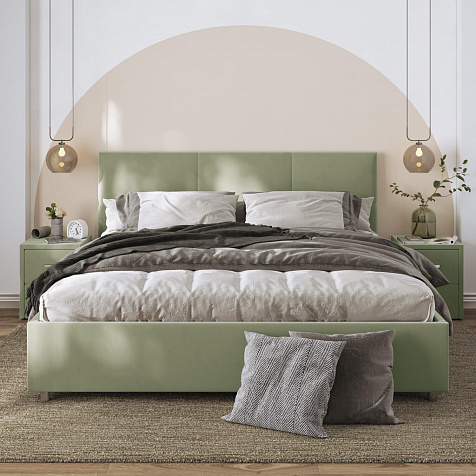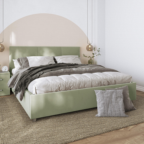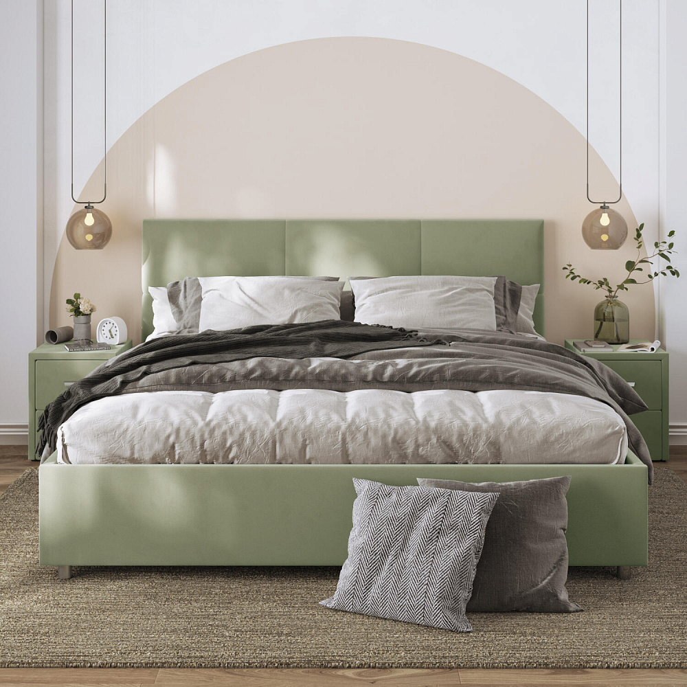 Кровать «Альба» — гармоничное сочетание стильного дизайна и комфорта. Мягкое изголовье с декором в виде прямоугольной строчки выглядит эффектно и создаёт ощущение уюта. Модель также поможет сэкономить пространство спальни благодаря вместительному бельевому коробу под решёткой.