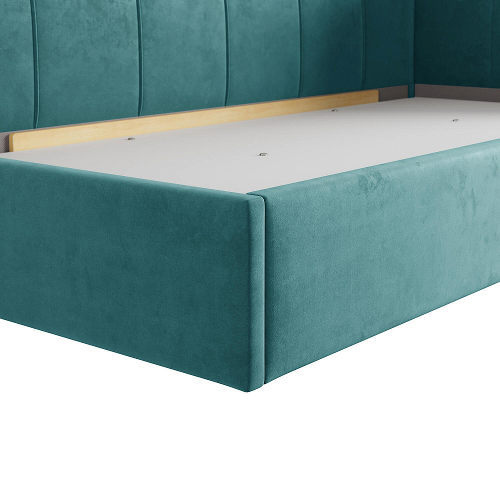Односпальная кровать «Мидо» — сочетание уюта и комфорта в современном дизайне. Спинка Г-образной формы в мягком велюре украшена декоративной стежкой в виде прямоугольников, что станет акцентом в интерьере подростковой комнаты.