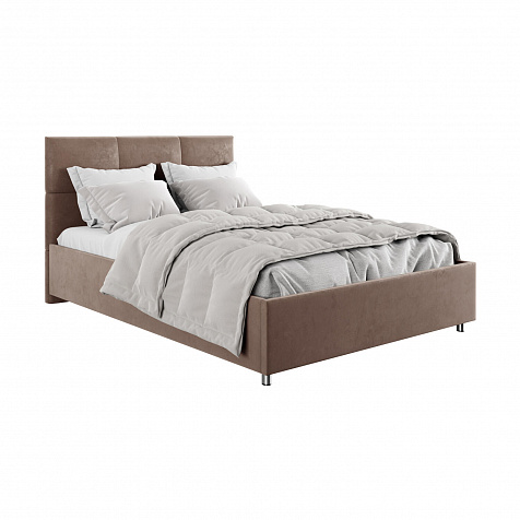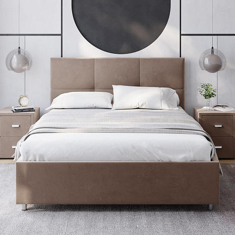 Кровать «Альба» — гармоничное сочетание стильного дизайна и комфорта. Мягкое изголовье с декором в виде прямоугольной строчки выглядит эффектно и создаёт ощущение уюта. Модель также поможет сэкономить пространство спальни благодаря вместительному бельевому коробу под решёткой.