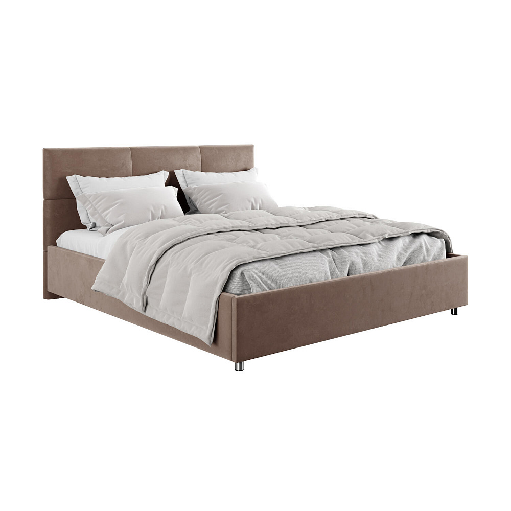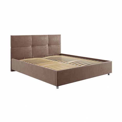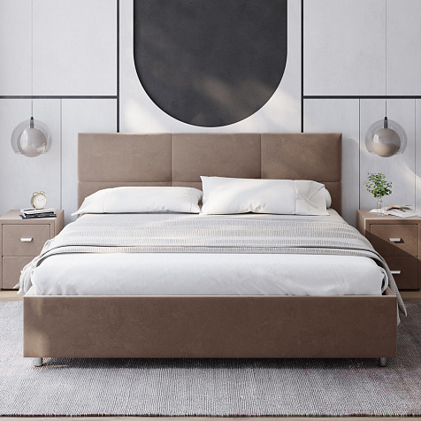 Кровать «Альба» — гармоничное сочетание стильного дизайна и комфорта. Мягкое изголовье с декором в виде прямоугольной строчки выглядит эффектно и создаёт ощущение уюта. Модель также поможет сэкономить пространство спальни благодаря вместительному бельевому коробу под решёткой.