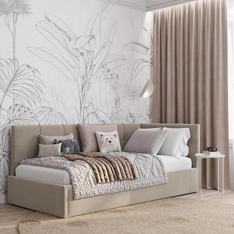 Односпальная кровать «Мидо» — сочетание уюта и комфорта в современном дизайне. Спинка Г-образной формы в мягком велюре украшена декоративной стежкой в виде прямоугольников, что станет акцентом в интерьере подростковой комнаты.