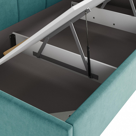 - Удобный доступ к коробу. Подъёмный механизм легко поднимает и опускает основание кровати вместе с матрасом.