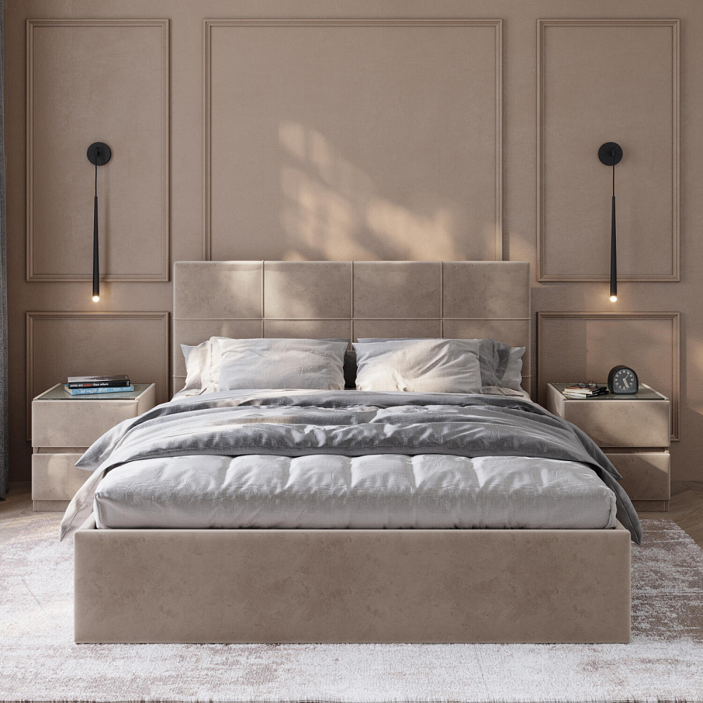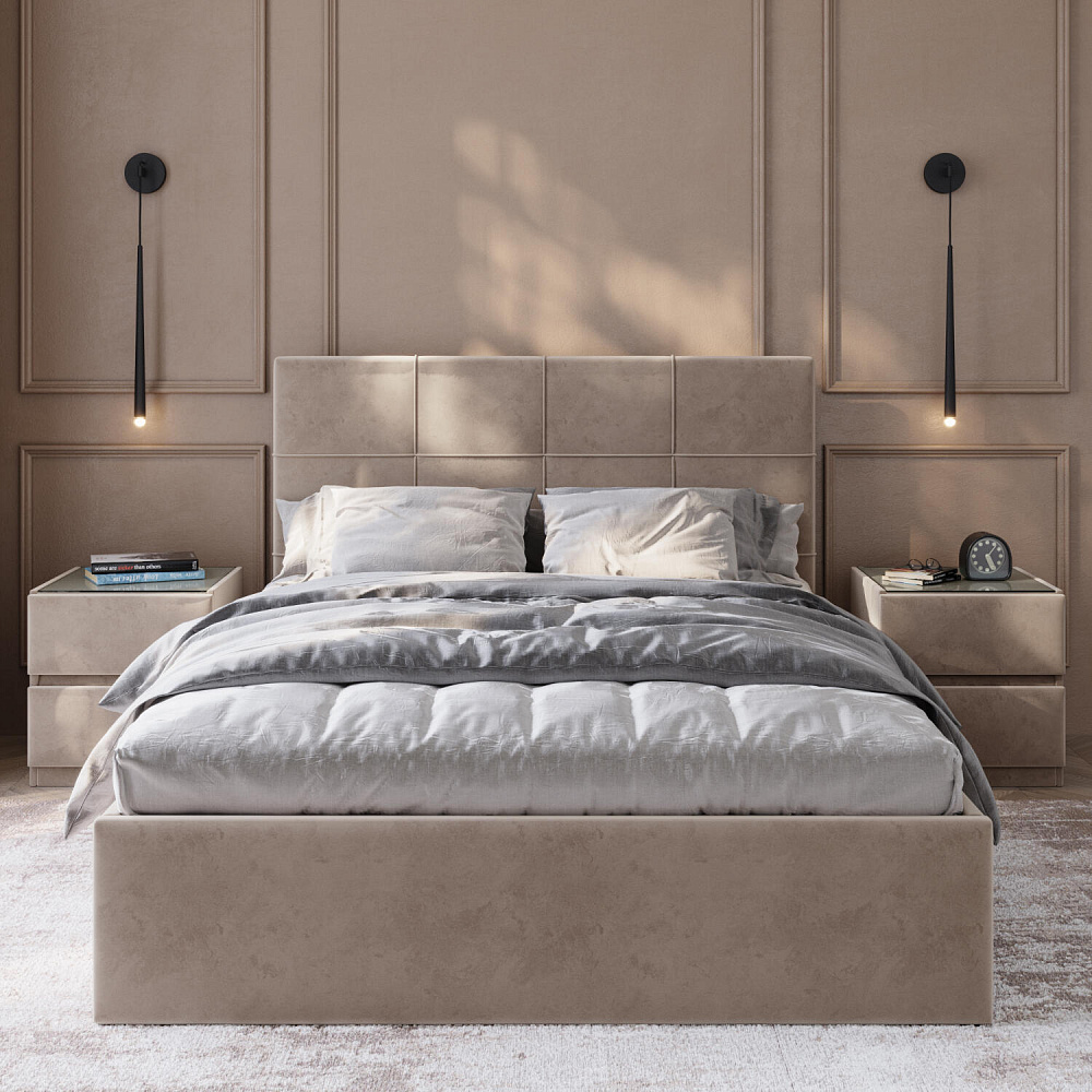 Кровать «Мальва» — универсальная модель в минималистическом стиле с геометрической стёжкой. Строгий и изящный дизайн модели станет ярким элементом в интерьере вашей спальни. Благодаря просвету под боковыми царгами будет удобно подходить и заправлять кровать.