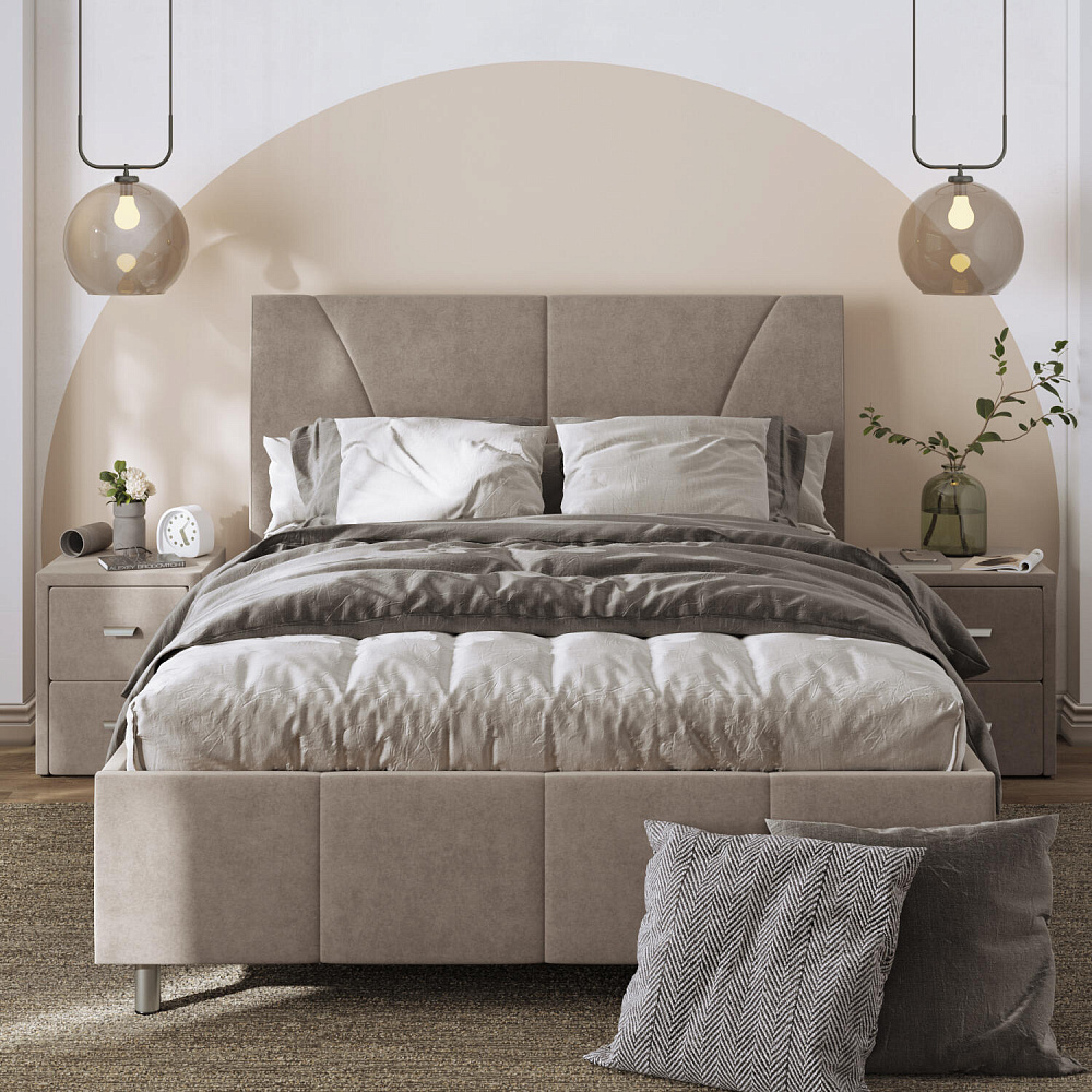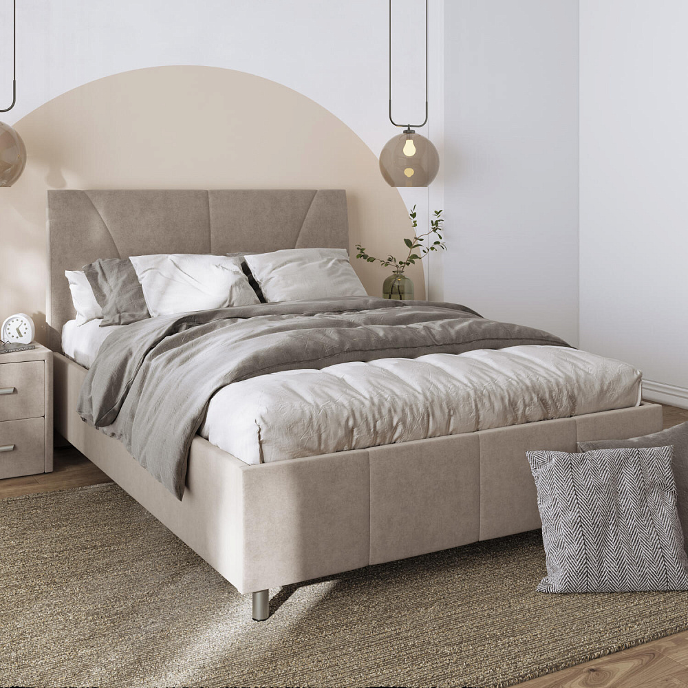 Мягкая кровать «Каролина» для тех, кому важен здоровый сон и эстетичный вид мебели. Дизайн отличается диагональными и прямыми строчками и слегка изогнутым изголовьем. Возвышение на ножках добавит в интерьер динамики и лёгкости. Кровать также поможет сэкономить пространство квартиры благодаря вместительному бельевому коробу под решёткой.
