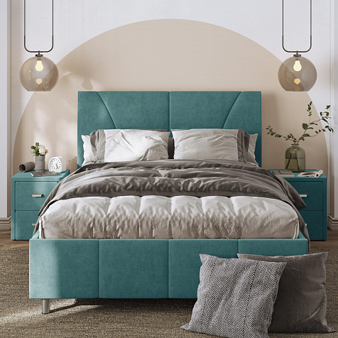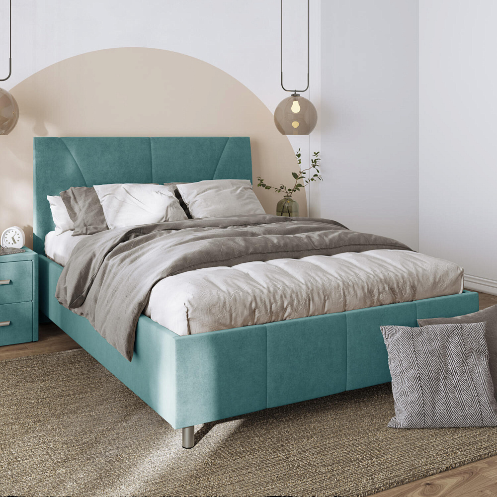 Мягкая кровать «Каролина» для тех, кому важен здоровый сон и эстетичный вид мебели. Дизайн отличается диагональными и прямыми строчками и слегка изогнутым изголовьем. Возвышение на ножках добавит в интерьер динамики и лёгкости. Кровать также поможет сэкономить пространство квартиры благодаря вместительному бельевому коробу под решёткой.