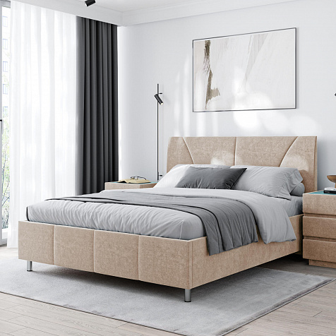 Мягкая кровать «Каролина» для тех, кому важен здоровый сон и эстетичный вид мебели. Дизайн отличается диагональными и прямыми строчками и слегка изогнутым изголовьем. Возвышение на ножках добавит в интерьер динамики и лёгкости. Кровать также поможет сэкономить пространство квартиры благодаря вместительному бельевому коробу под решёткой.