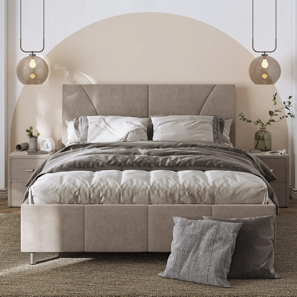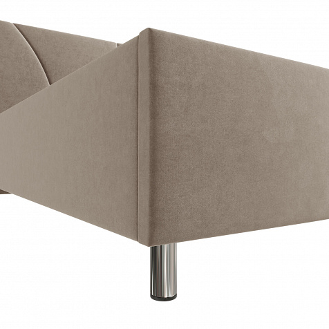 Мягкая кровать «Каролина» для тех, кому важен здоровый сон и эстетичный вид мебели. Дизайн отличается диагональными и прямыми строчками и слегка изогнутым изголовьем. Возвышение на ножках добавит в интерьер динамики и лёгкости. Кровать также поможет сэкономить пространство квартиры благодаря вместительному бельевому коробу под решёткой.