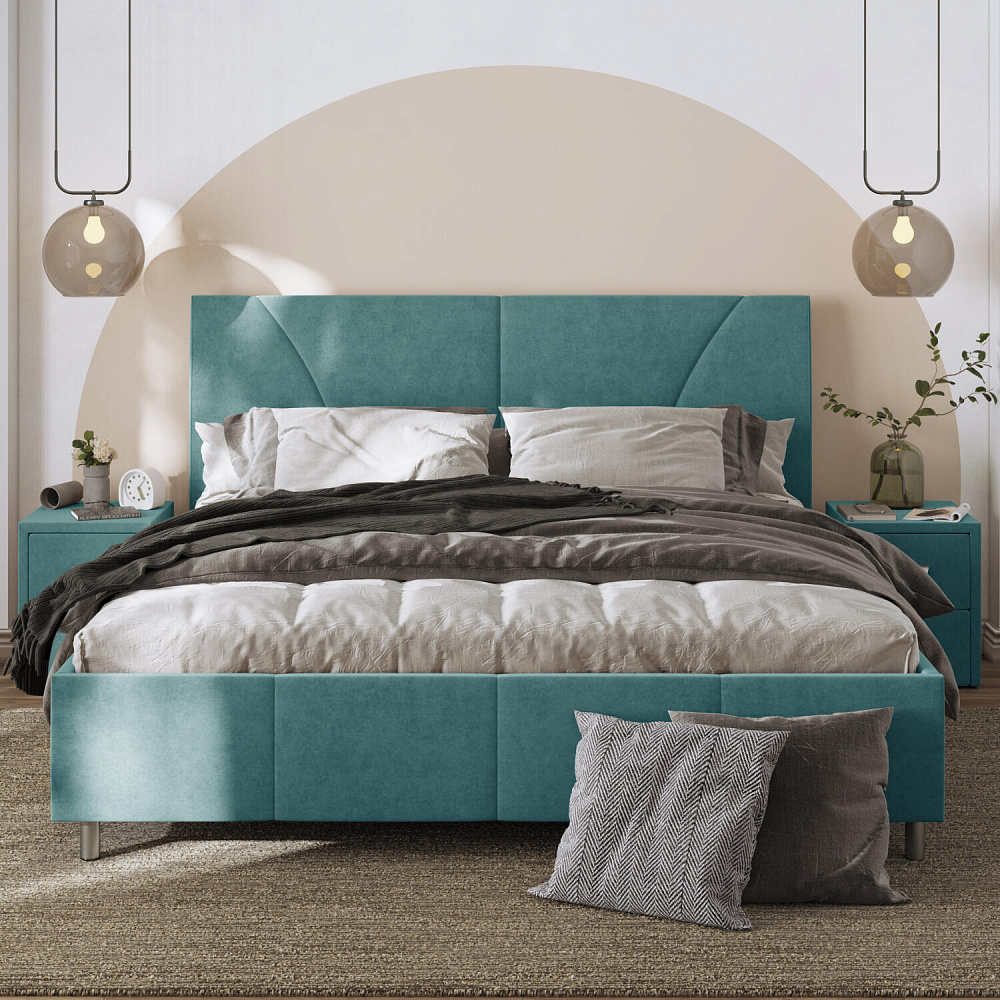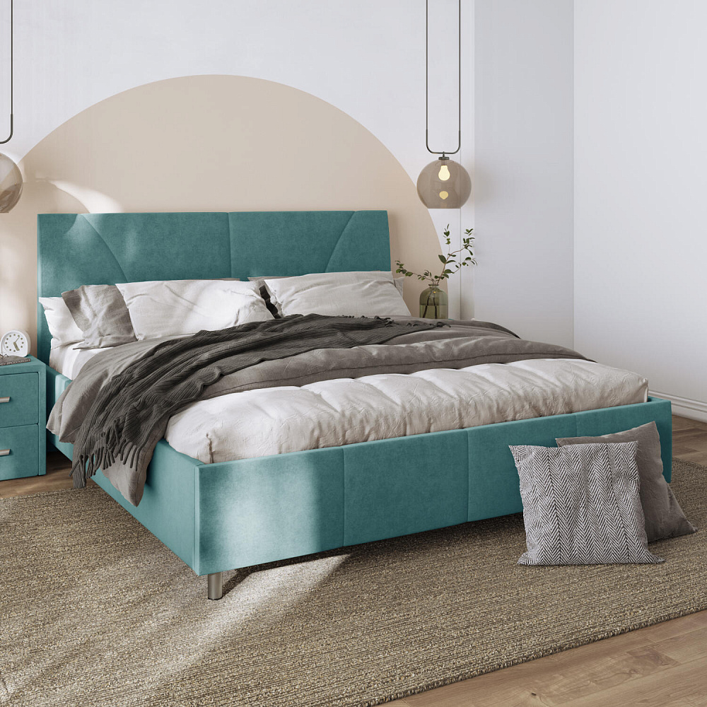 Мягкая кровать «Каролина» для тех, кому важен здоровый сон и эстетичный вид мебели. Дизайн отличается диагональными и прямыми строчками и слегка изогнутым изголовьем. Возвышение на ножках добавит в интерьер динамики и лёгкости. Кровать также поможет сэкономить пространство квартиры благодаря вместительному бельевому коробу под решёткой.