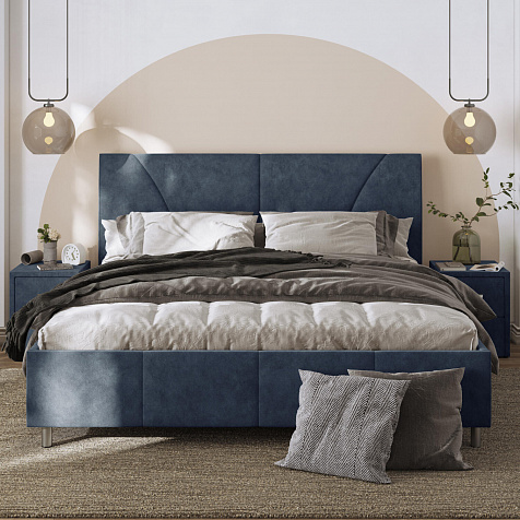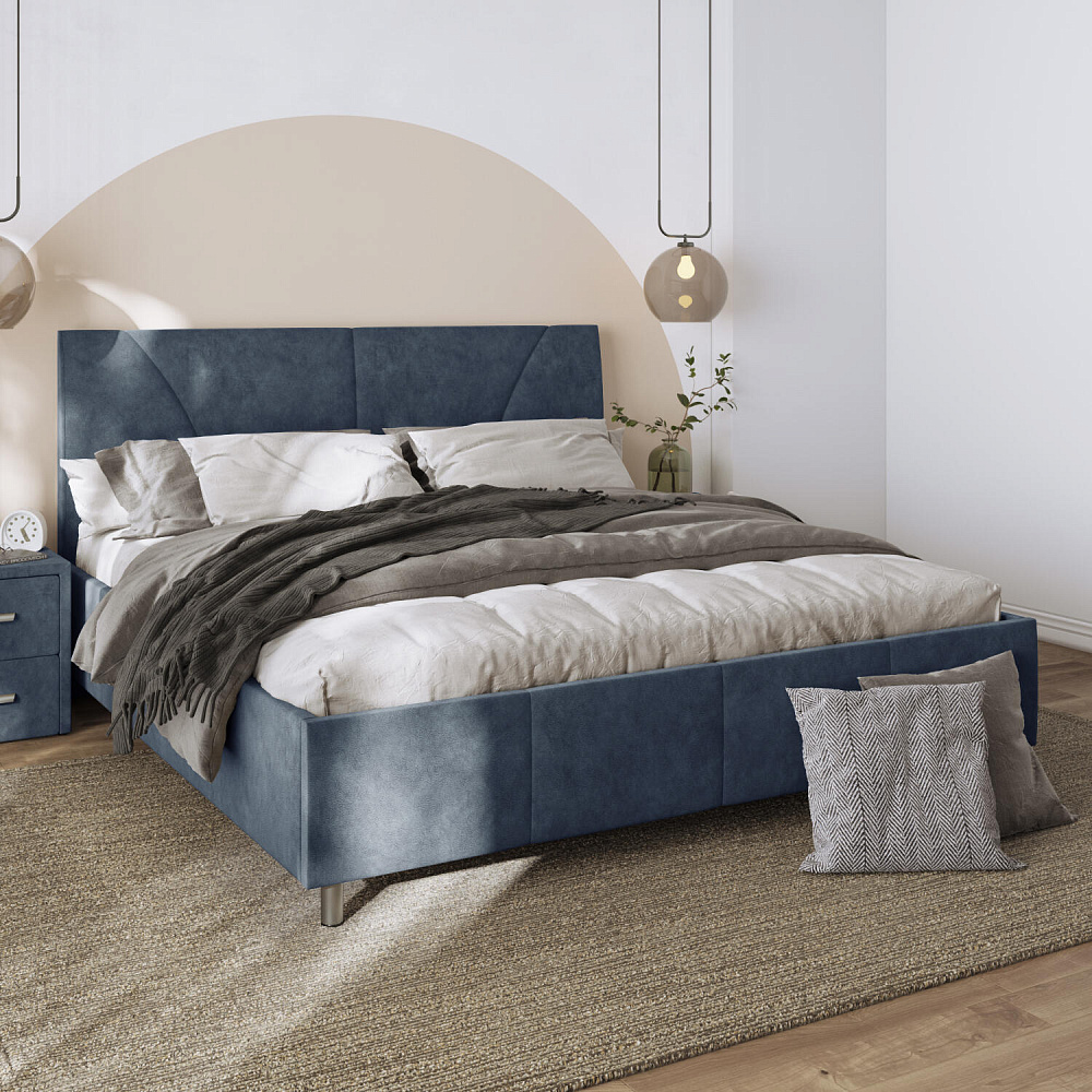 Мягкая кровать «Каролина» для тех, кому важен здоровый сон и эстетичный вид мебели. Дизайн отличается диагональными и прямыми строчками и слегка изогнутым изголовьем. Возвышение на ножках добавит в интерьер динамики и лёгкости. Кровать также поможет сэкономить пространство квартиры благодаря вместительному бельевому коробу под решёткой.