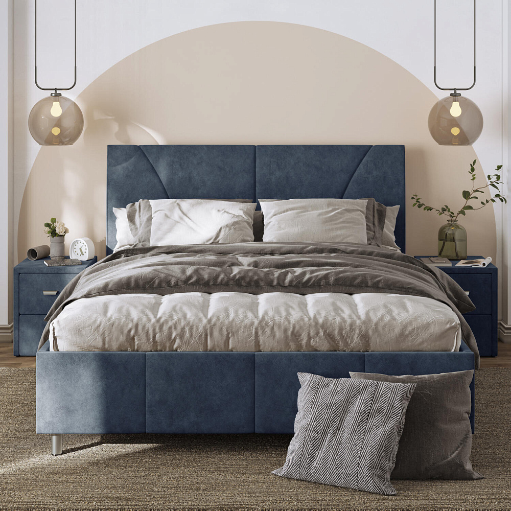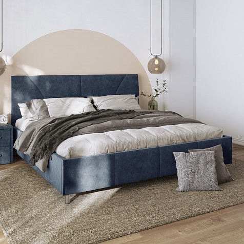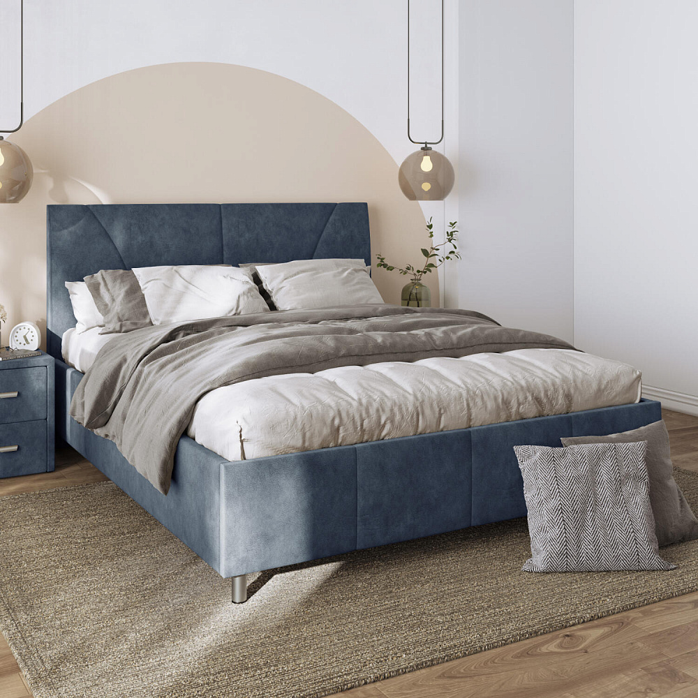 Мягкая кровать «Каролина» для тех, кому важен здоровый сон и эстетичный вид мебели. Дизайн отличается диагональными и прямыми строчками и слегка изогнутым изголовьем. Возвышение на ножках добавит в интерьер динамики и лёгкости. Кровать также поможет сэкономить пространство квартиры благодаря вместительному бельевому коробу под решёткой.