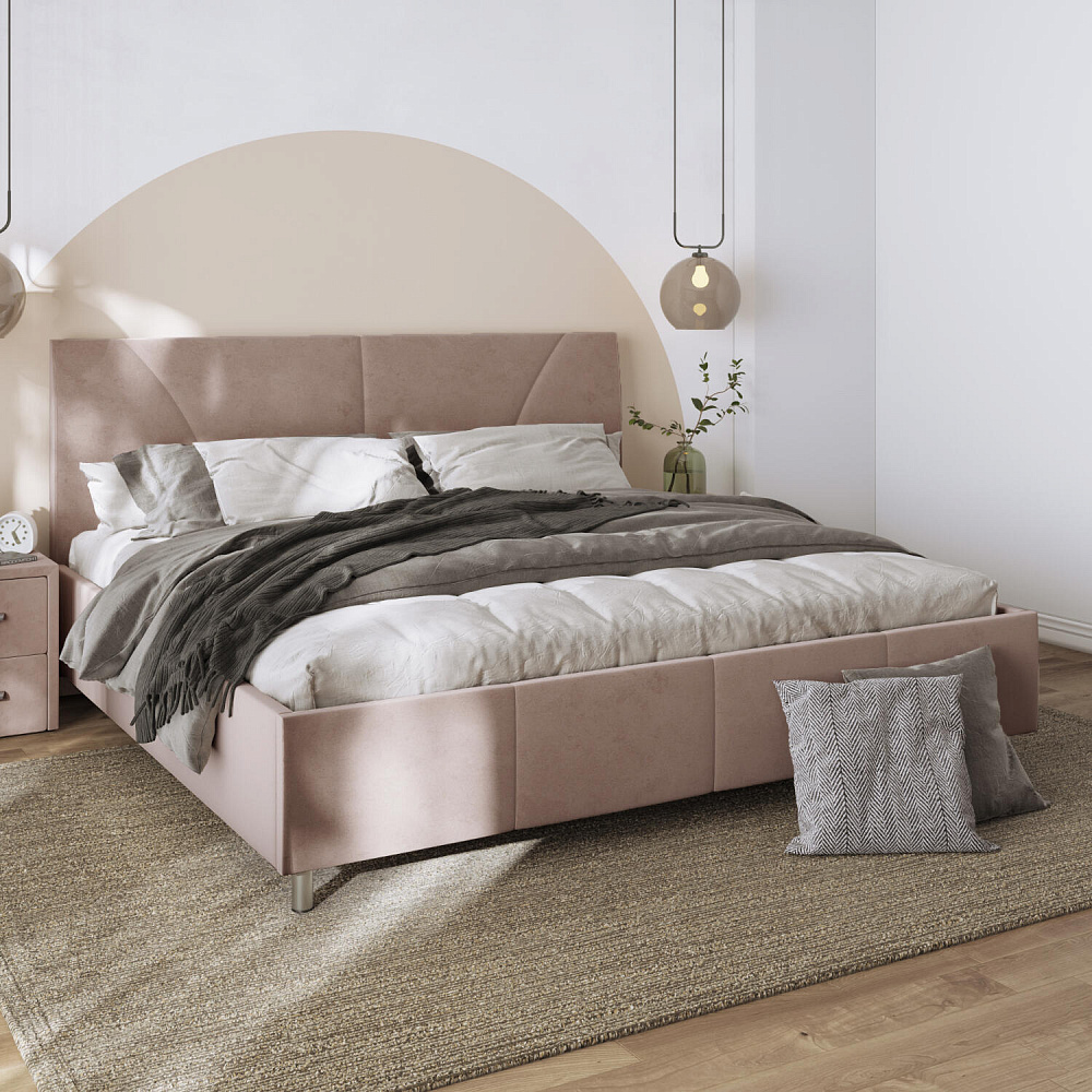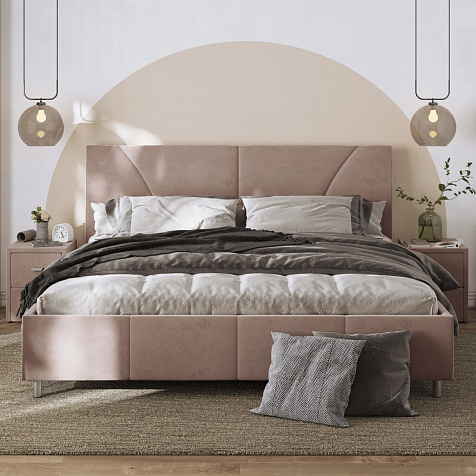 Мягкая кровать «Каролина» для тех, кому важен здоровый сон и эстетичный вид мебели. Дизайн отличается диагональными и прямыми строчками и слегка изогнутым изголовьем. Возвышение на ножках добавит в интерьер динамики и лёгкости. Кровать также поможет сэкономить пространство квартиры благодаря вместительному бельевому коробу под решёткой.