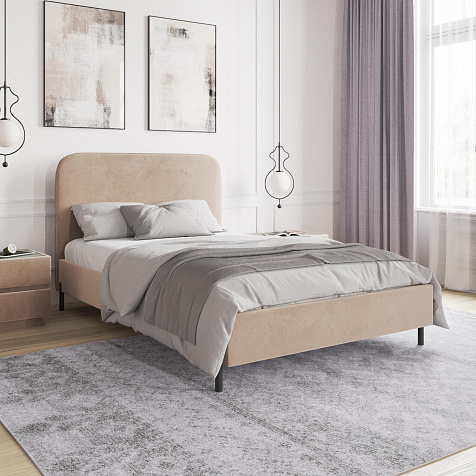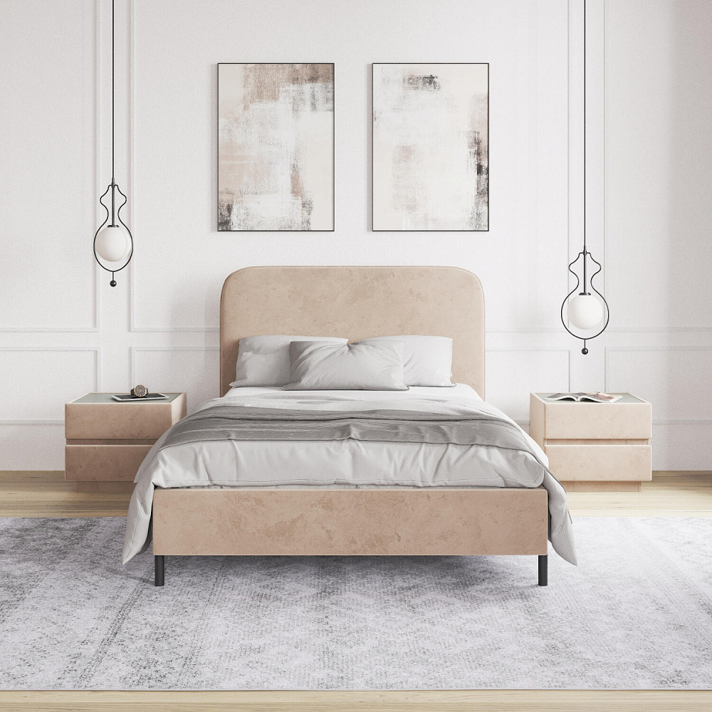 Высокие металлические опоры — стильный акцент в дизайне кровати, который придает ей визуальную легкость и невесомость.