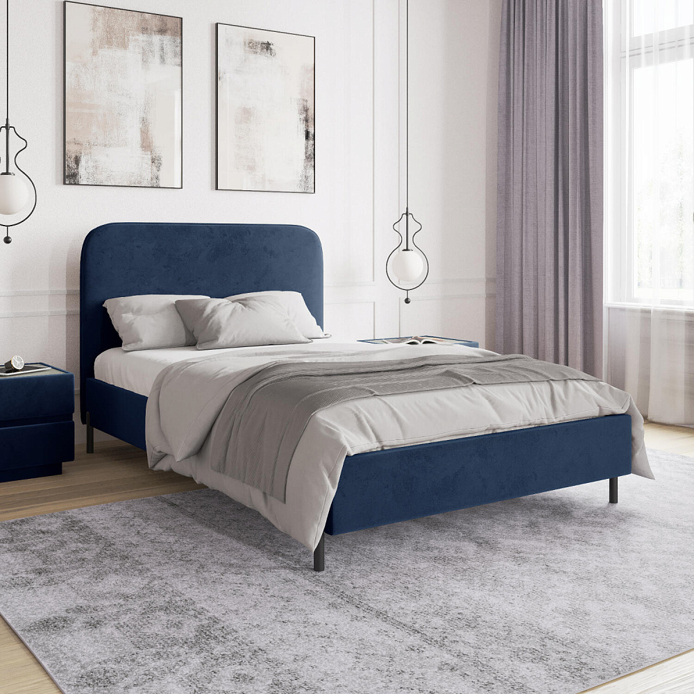 Высокие металлические опоры — стильный акцент в дизайне кровати, который придает ей визуальную легкость и невесомость.