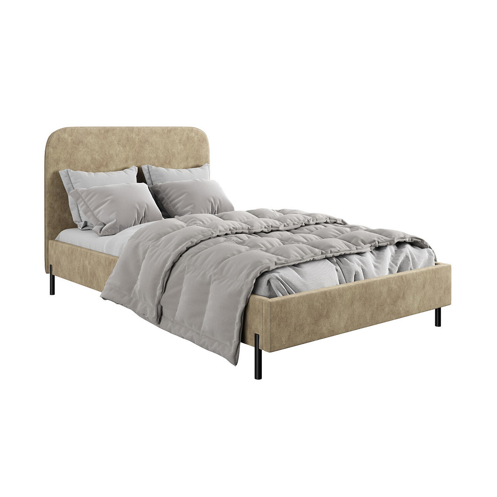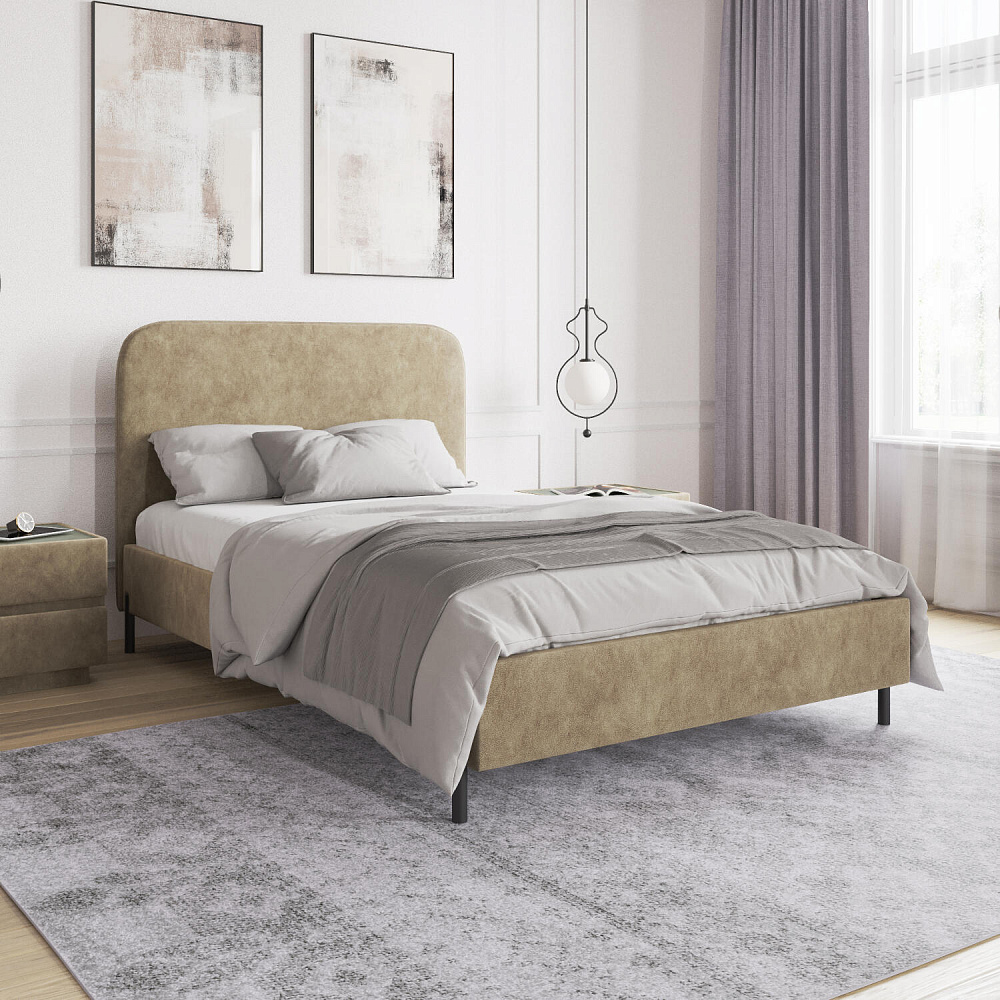Высокие металлические опоры — стильный акцент в дизайне кровати, который придает ей визуальную легкость и невесомость.