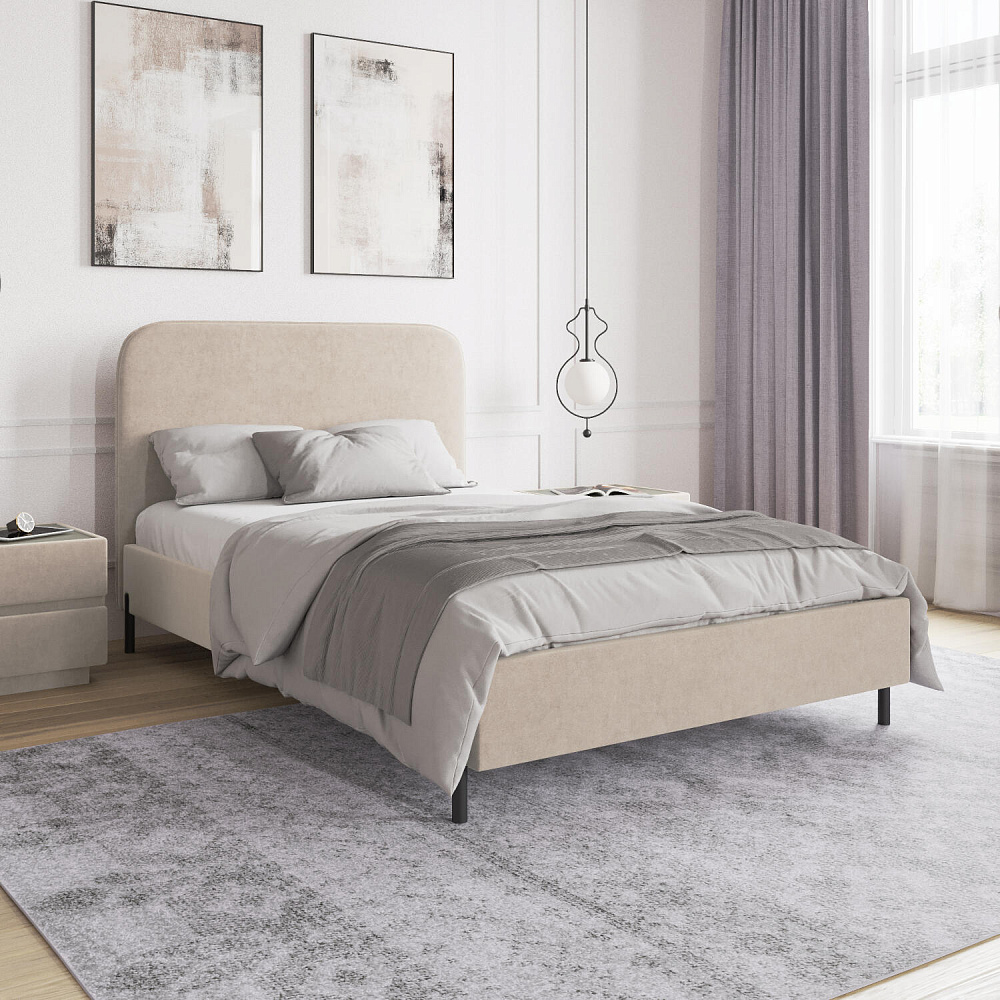 Высокие металлические опоры — стильный акцент в дизайне кровати, который придает ей визуальную легкость и невесомость.