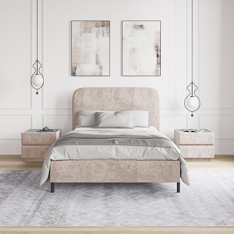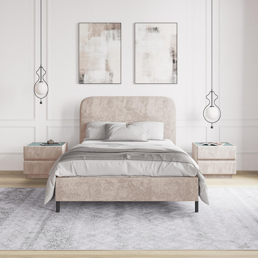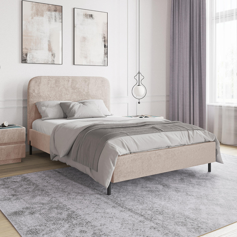 Высокие металлические опоры — стильный акцент в дизайне кровати, который придает ей визуальную легкость и невесомость.