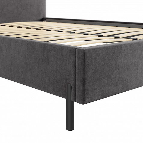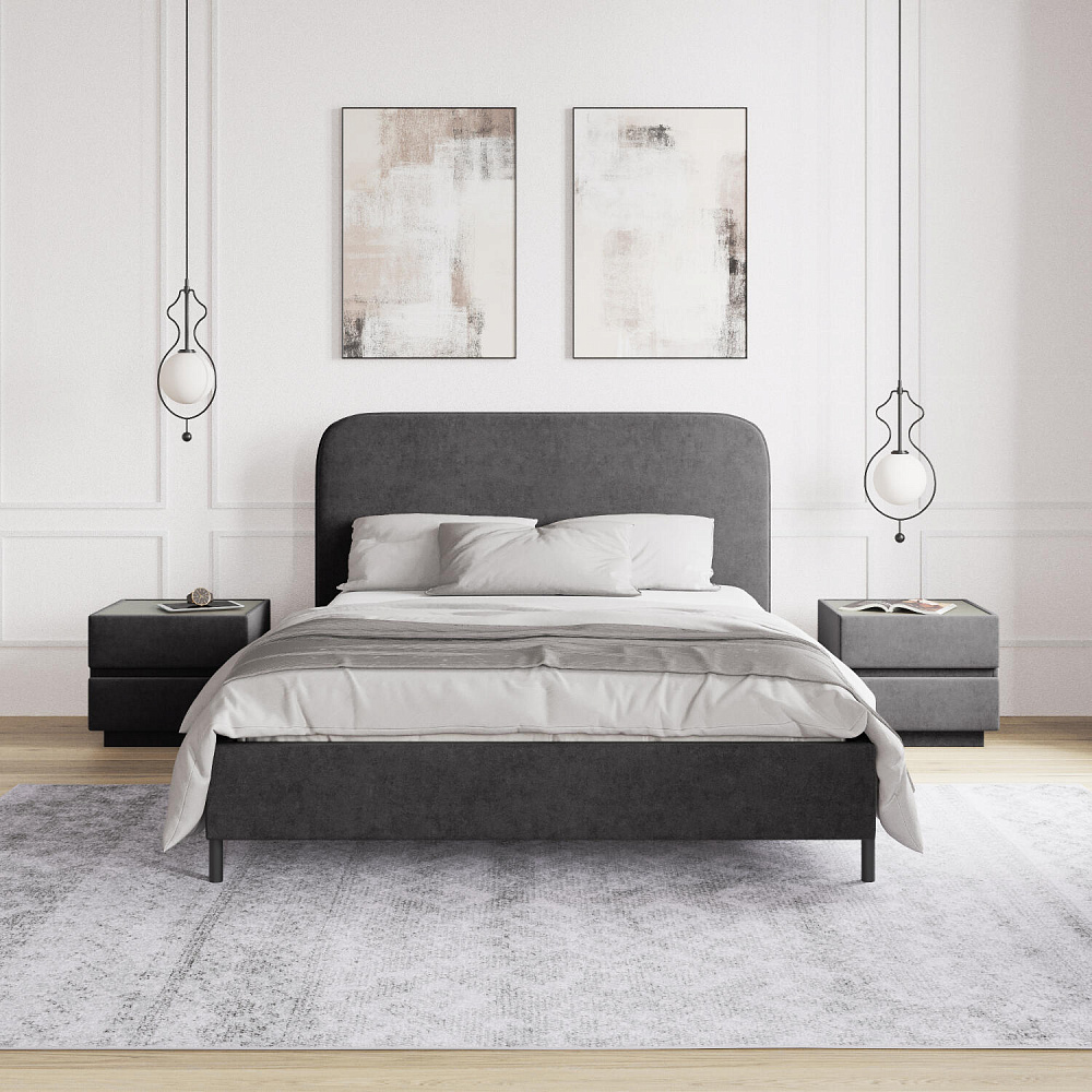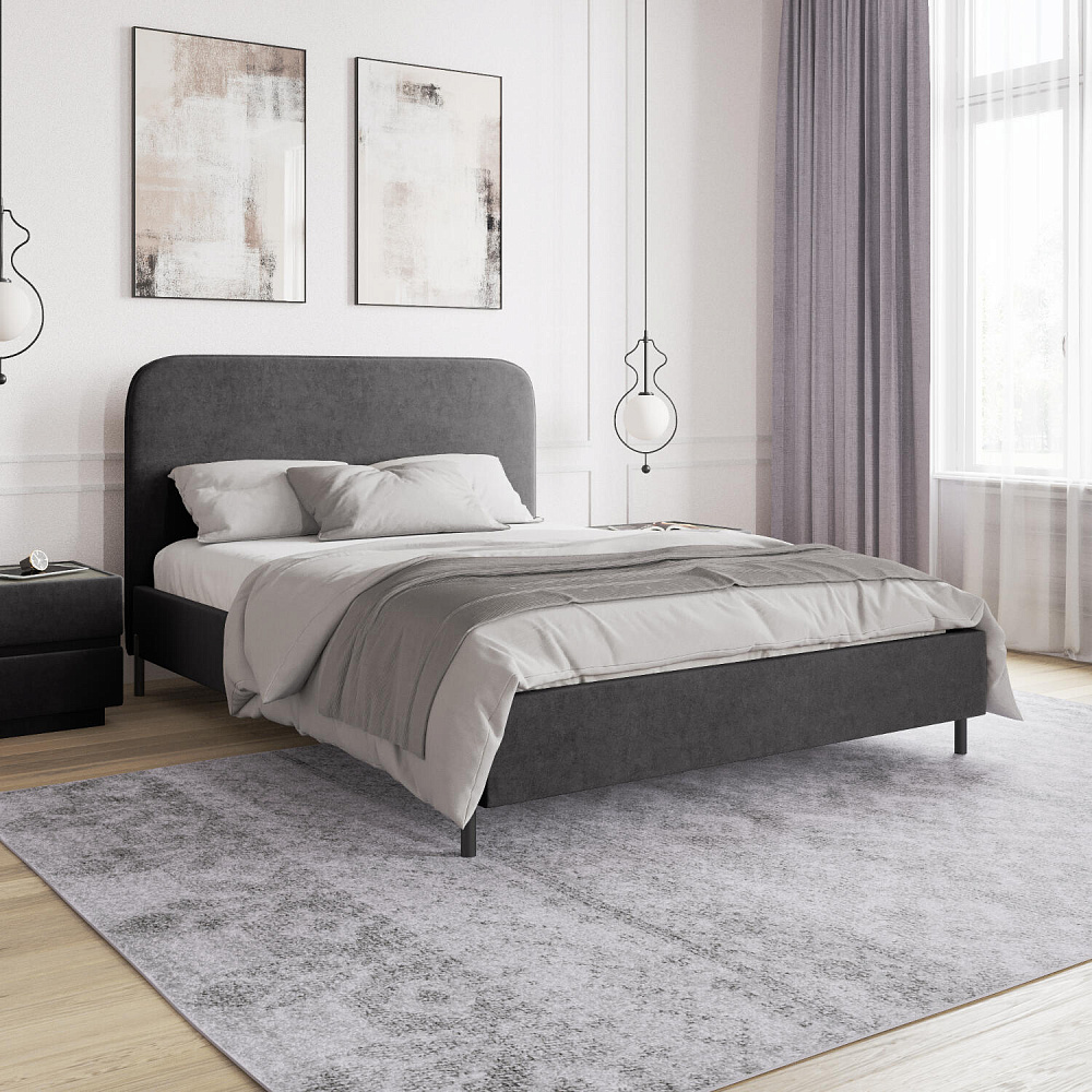 Высокие металлические опоры — стильный акцент в дизайне кровати, который придает ей визуальную легкость и невесомость.