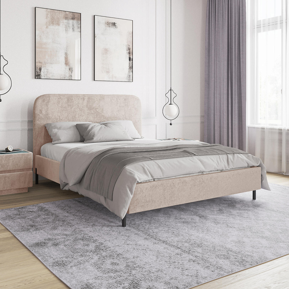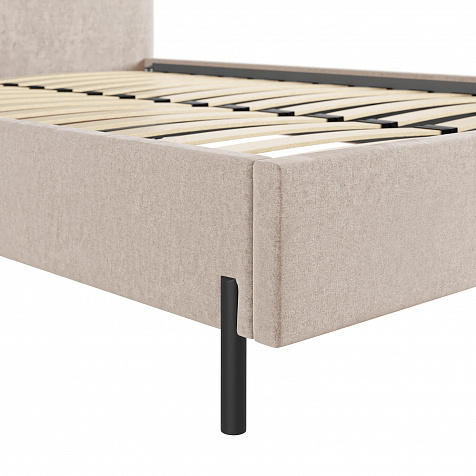 Высокие металлические опоры — стильный акцент в дизайне кровати, который придает ей визуальную легкость и невесомость.