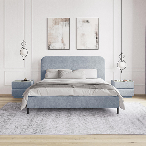 Высокие металлические опоры — стильный акцент в дизайне кровати, который придает ей визуальную легкость и невесомость.