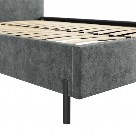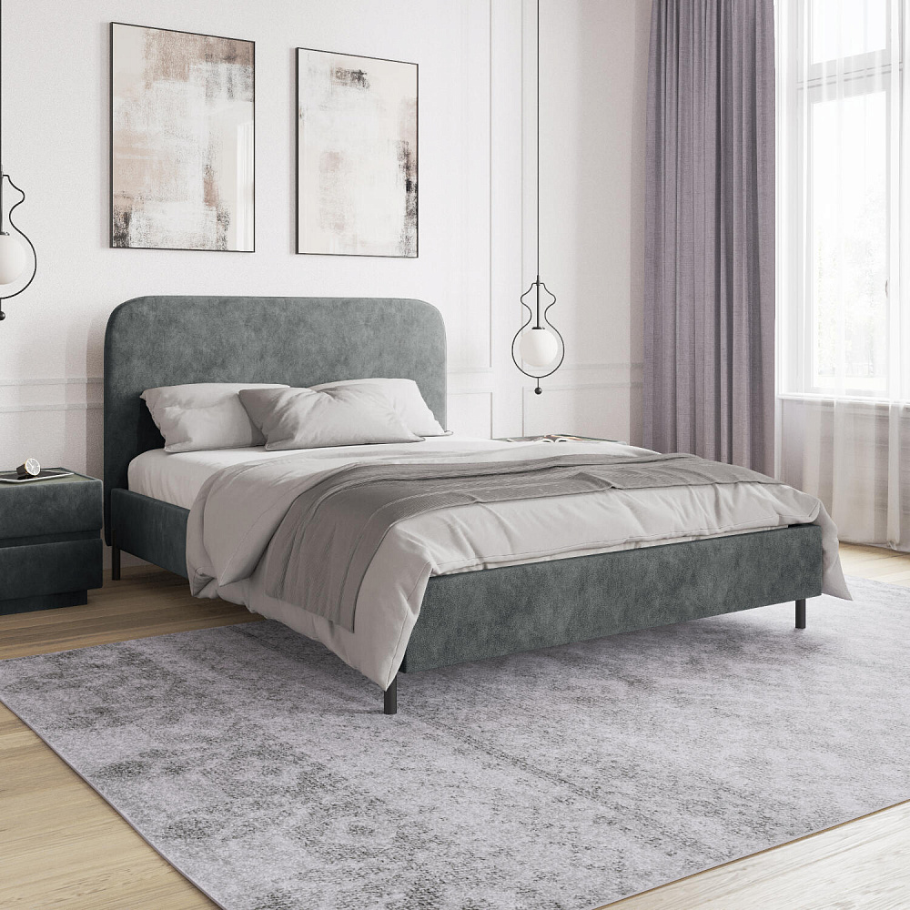 Высокие металлические опоры — стильный акцент в дизайне кровати, который придает ей визуальную легкость и невесомость.
