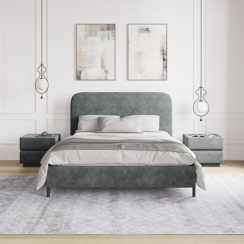Обивка из велюра. Приятная на ощупь ткань с мелким ненавязчивым принтом под камень излучает естественность, необыкновенную легкость и уют.