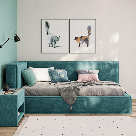 - Универсальная боковая спинка. Спинку можно фиксировать как справа, так и слева, что не ограничивает возможность установки кровати в любом пространстве комнаты.