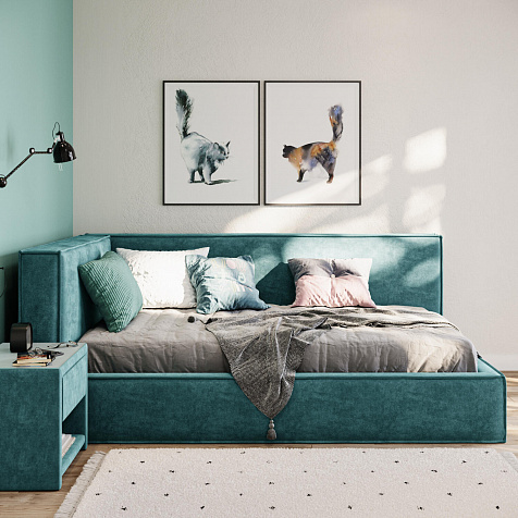 - Дизайн на 360 градусов. Кровать выполнена в основной обивочной ткани со всех сторон.