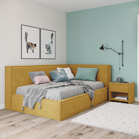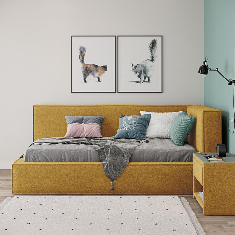 - Дизайн на 360 градусов. Кровать выполнена в основной обивочной ткани со всех сторон.