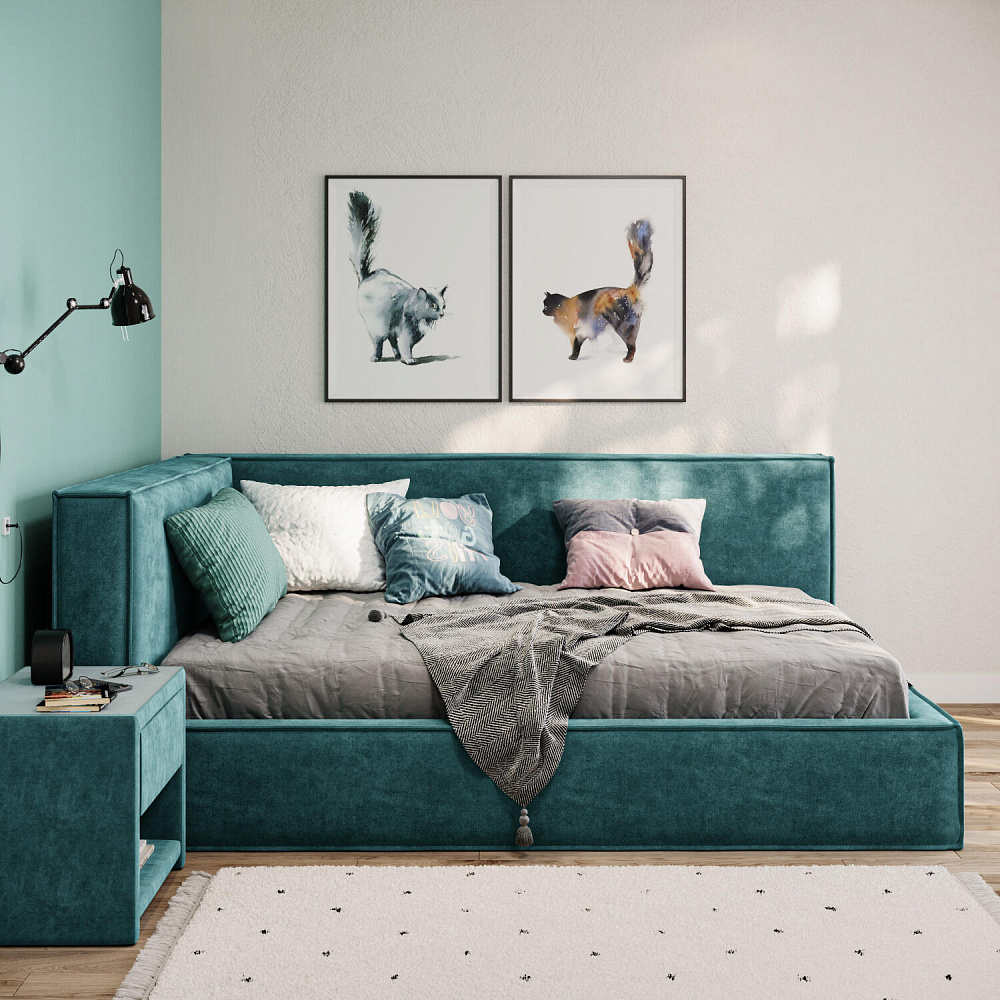 - Дизайн на 360 градусов. Кровать выполнена в основной обивочной ткани со всех сторон.