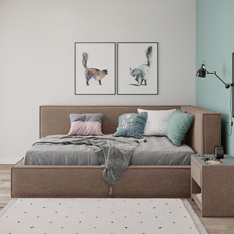 - Универсальная боковая спинка. Спинку можно фиксировать как справа, так и слева, что не ограничивает возможность установки кровати в любом пространстве комнаты.
