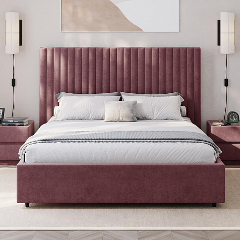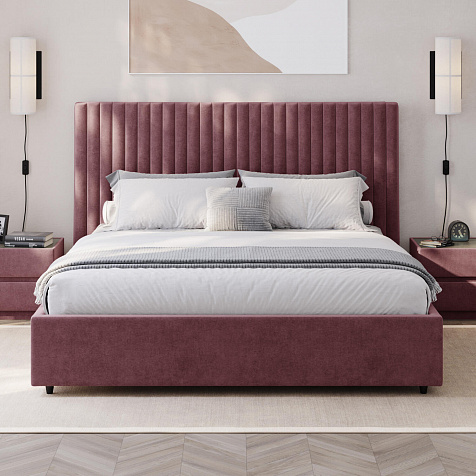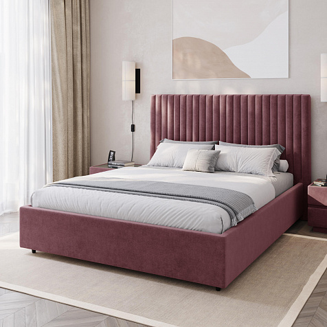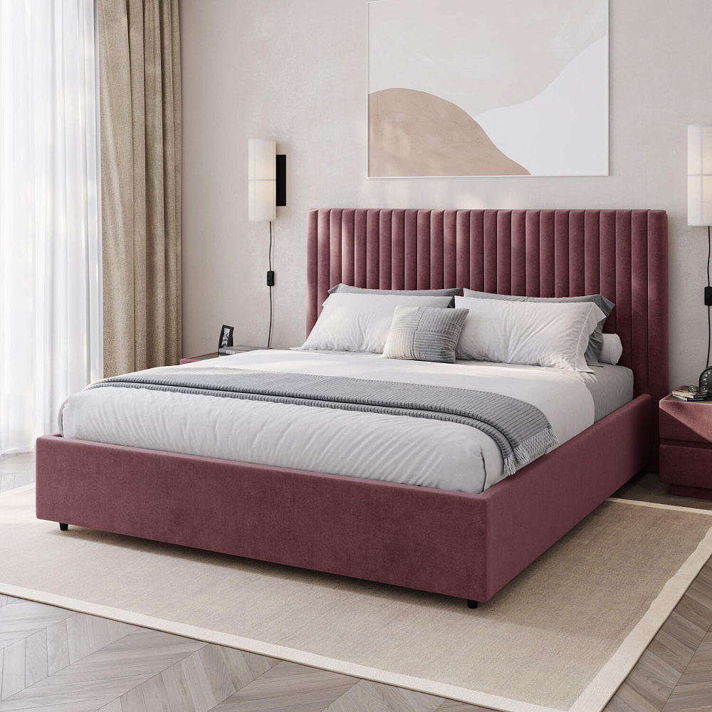 Мягкая кровать «Максима» в обивке из велюра украсит современный интерьер спальни и подарит комфортный сон. Лаконичная строчка в виде вертикальных параллельных линий на изголовье подходит для различных стилей интерьера, от современного минимализма до классики. Модель поможет сэкономить место в комнате благодаря просторному бельевому коробу под решёткой, и станет не только практичным, но и стильным акцентом в спальне.