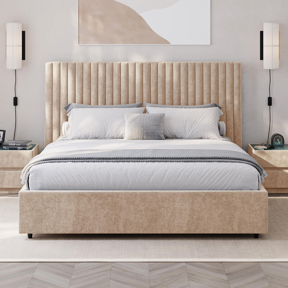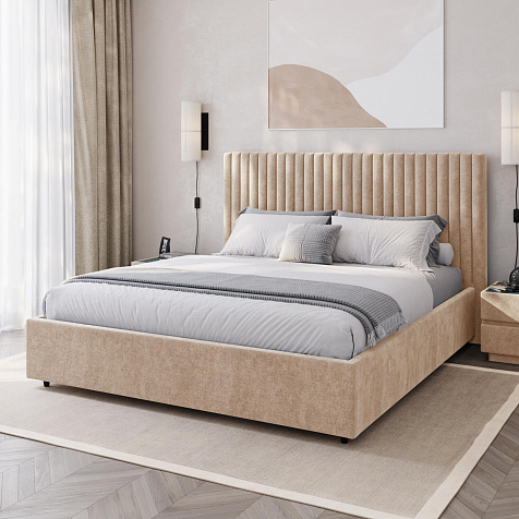 Мягкая кровать «Максима» в обивке из велюра украсит современный интерьер спальни и подарит комфортный сон. Лаконичная строчка в виде вертикальных параллельных линий на изголовье подходит для различных стилей интерьера, от современного минимализма до классики. Модель поможет сэкономить место в комнате благодаря просторному бельевому коробу под решёткой, и станет не только практичным, но и стильным акцентом в спальне.