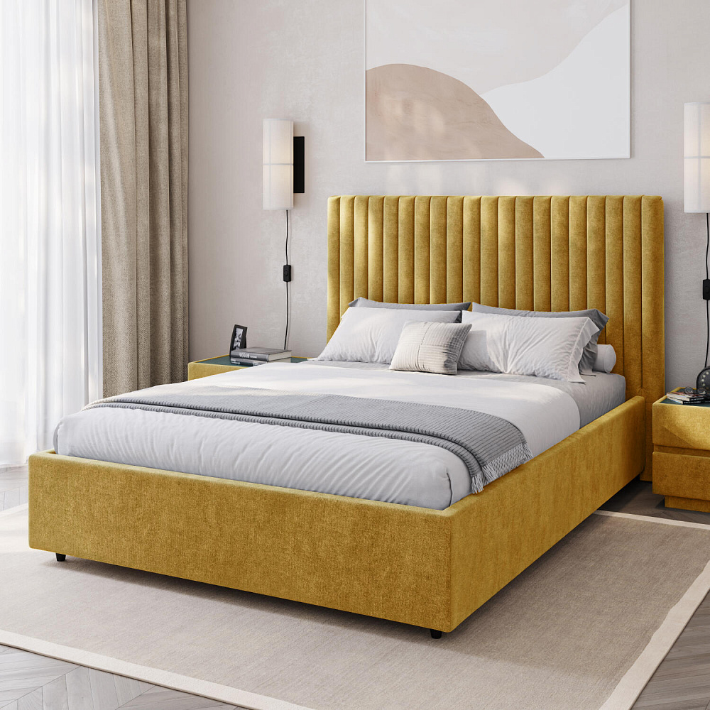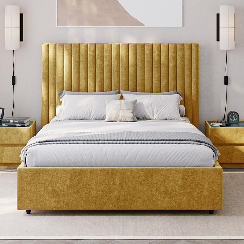 Мягкая кровать «Максима» в обивке из велюра украсит современный интерьер спальни и подарит комфортный сон. Лаконичная строчка в виде вертикальных параллельных линий на изголовье подходит для различных стилей интерьера, от современного минимализма до классики. Модель поможет сэкономить место в комнате благодаря просторному бельевому коробу под решёткой, и станет не только практичным, но и стильным акцентом в спальне.