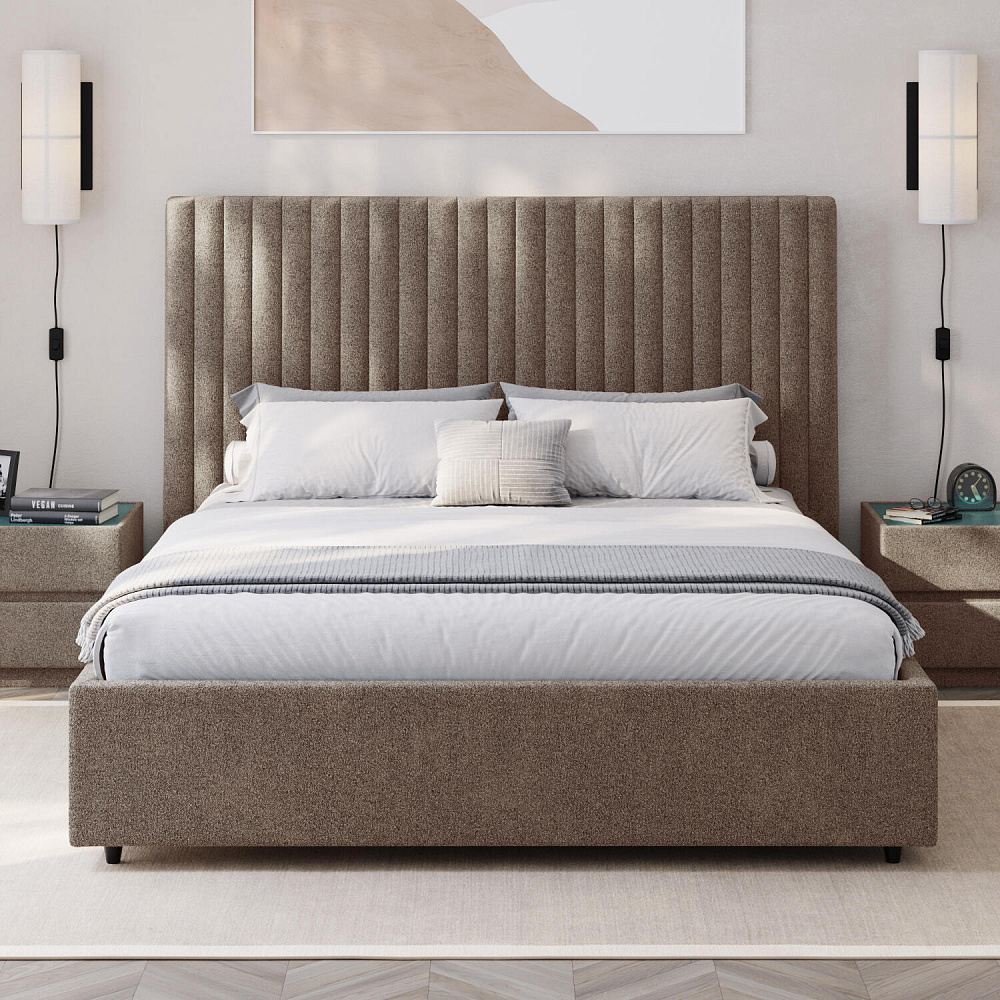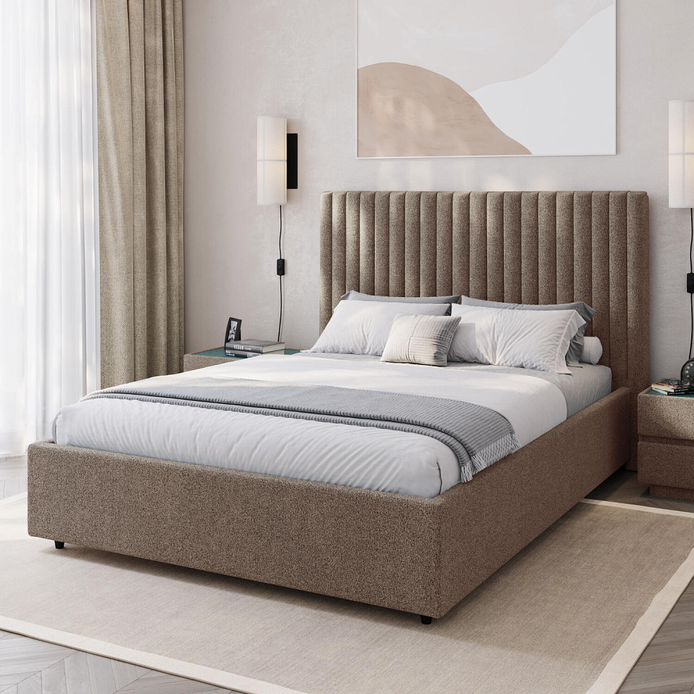 Мягкая кровать «Максима» в обивке из ткани букле украсит современный интерьер спальни и подарит комфортный сон. Лаконичная строчка в виде вертикальных параллельных линий на изголовье подходит для различных стилей интерьера, от современного минимализма до классики. Модель поможет сэкономить место в комнате благодаря просторному бельевому коробу под решёткой, и станет не только практичным, но и стильным акцентом в спальне.