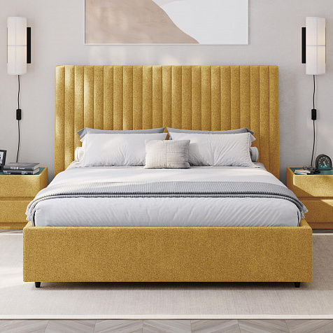 Мягкая кровать «Максима» в обивке из ткани букле украсит современный интерьер спальни и подарит комфортный сон. Лаконичная строчка в виде вертикальных параллельных линий на изголовье подходит для различных стилей интерьера, от современного минимализма до классики. Модель поможет сэкономить место в комнате благодаря просторному бельевому коробу под решёткой, и станет не только практичным, но и стильным акцентом в спальне.