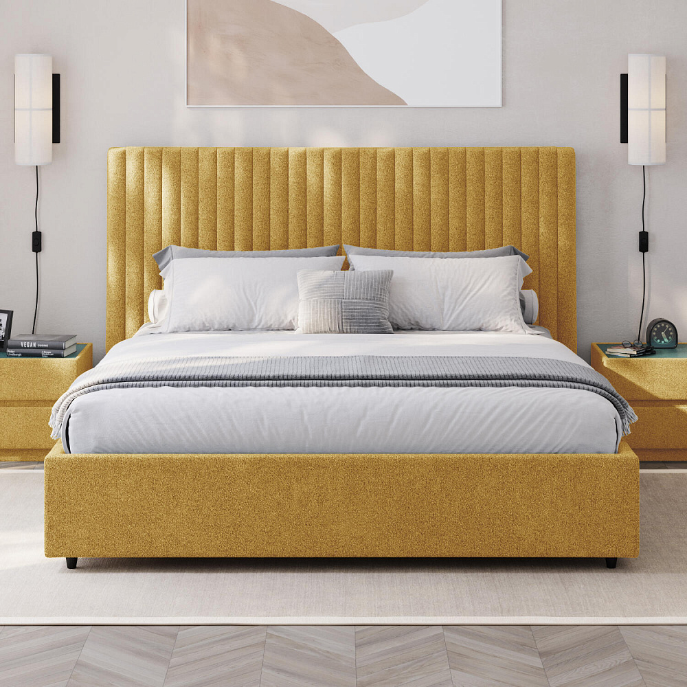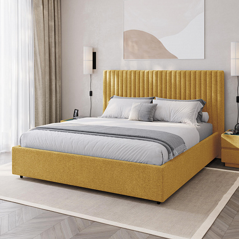 Мягкая кровать «Максима» в обивке из ткани букле украсит современный интерьер спальни и подарит комфортный сон. Лаконичная строчка в виде вертикальных параллельных линий на изголовье подходит для различных стилей интерьера, от современного минимализма до классики. Модель поможет сэкономить место в комнате благодаря просторному бельевому коробу под решёткой, и станет не только практичным, но и стильным акцентом в спальне.